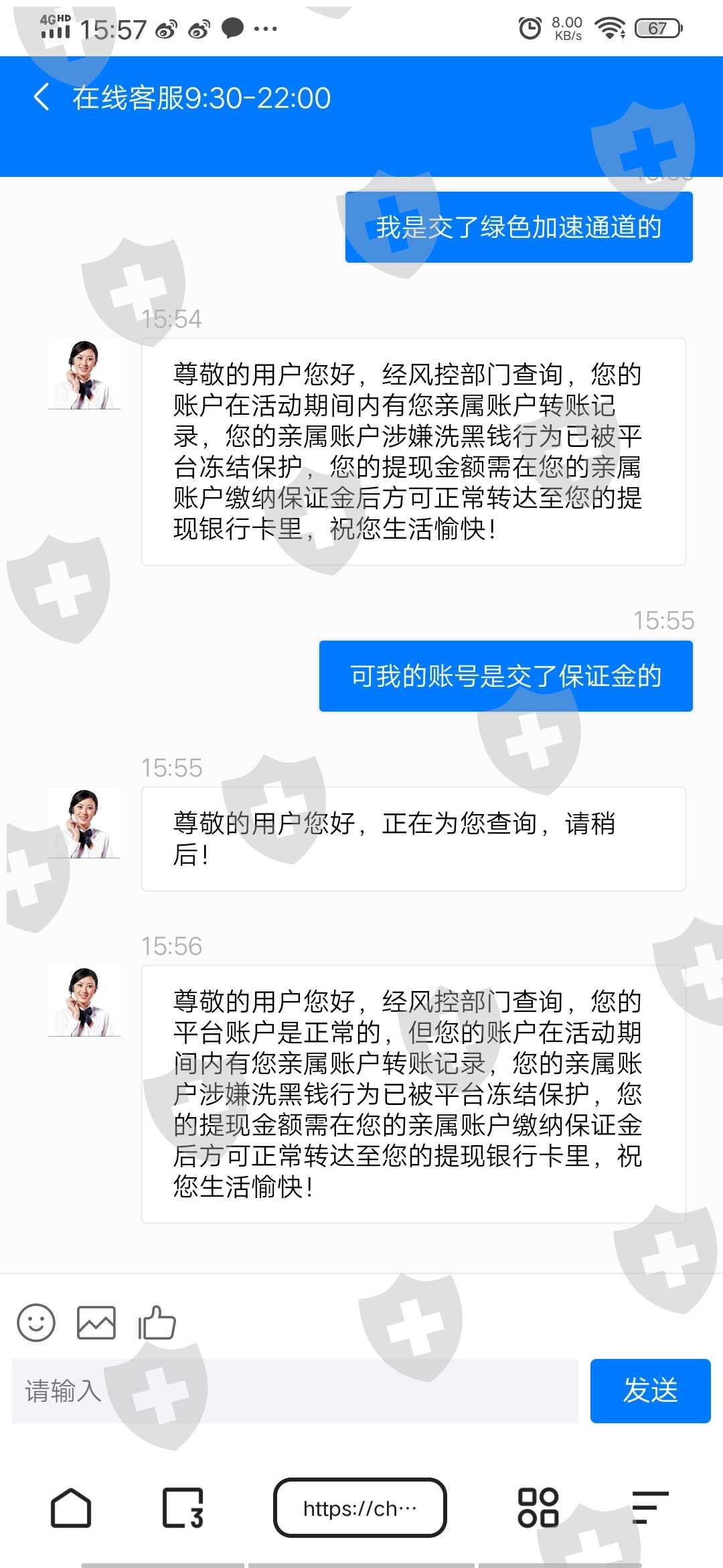 无法出金,和客服交流过很多次,都以合种理由搪塞过去,还不停的诱导客户交各种费用,来拖延时间,然后冻结资金,最后说解冻资金要交解冻费,可那家银行解冻资金都不需要解冻费用的