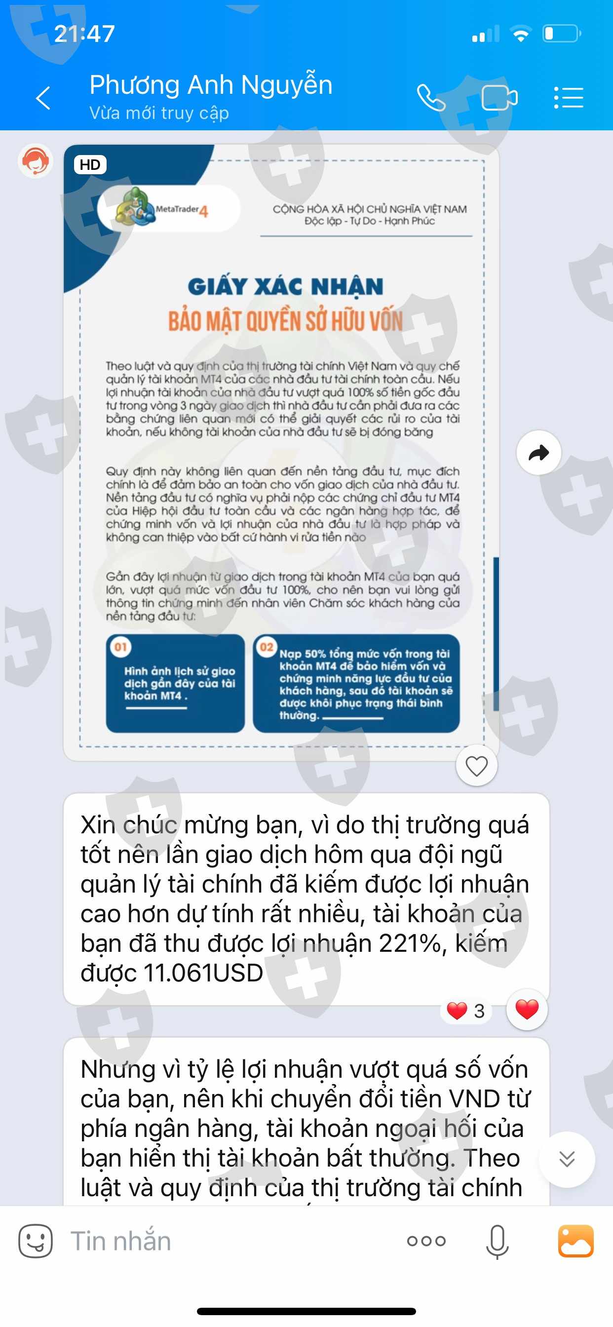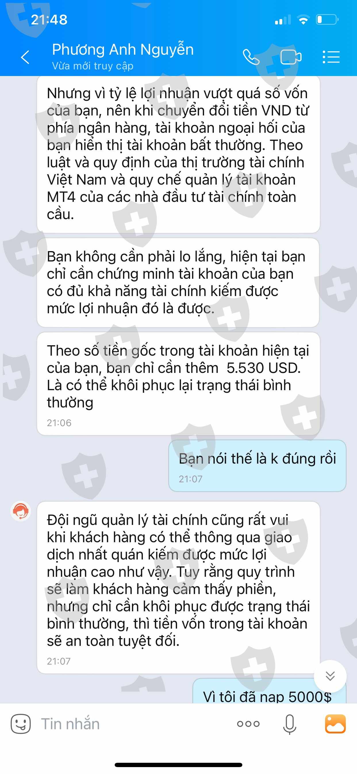 khi làm lệnh rút tiền hệ thống đã trừ tiền trong tài khoản MT4 và trong tài khoản cá nhân.Nhưng chỉ xác nhận mà không thông qua.tiền không được chuyển về tài khoản ngân hàng của tôi