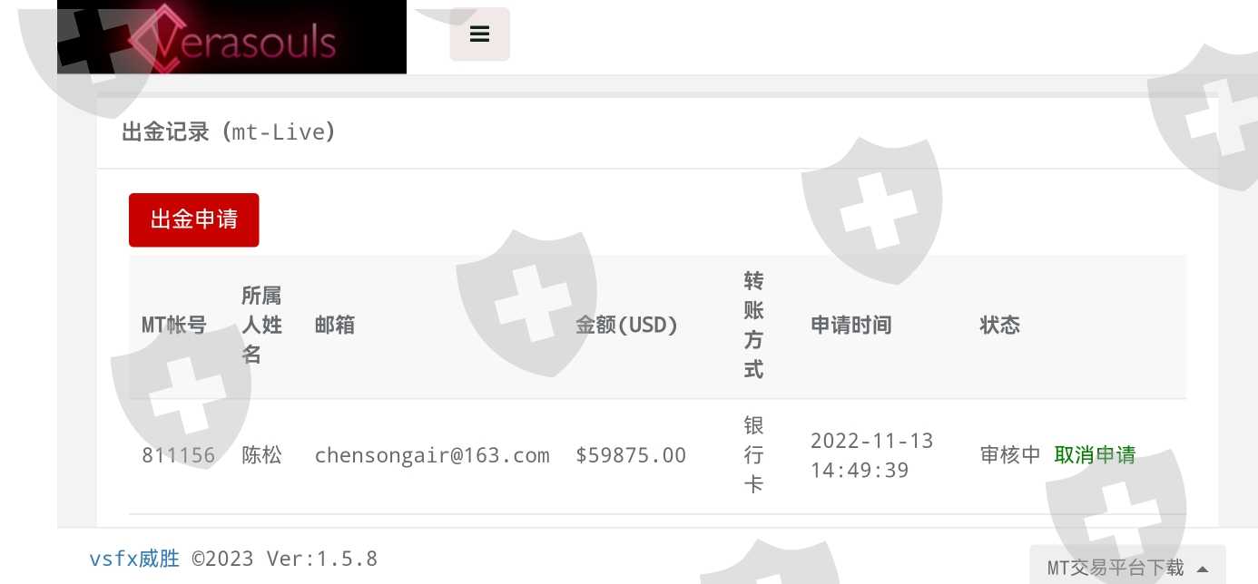 威胜外汇从2022年9月20号左右开始无法出金,平台领导人一直以各种借口和理由向会员实施缓兵之计。希望相关部门予以帮助解决,让平台归还我的血汗钱。姓名:陈松MT账号:811156MT账号:811154