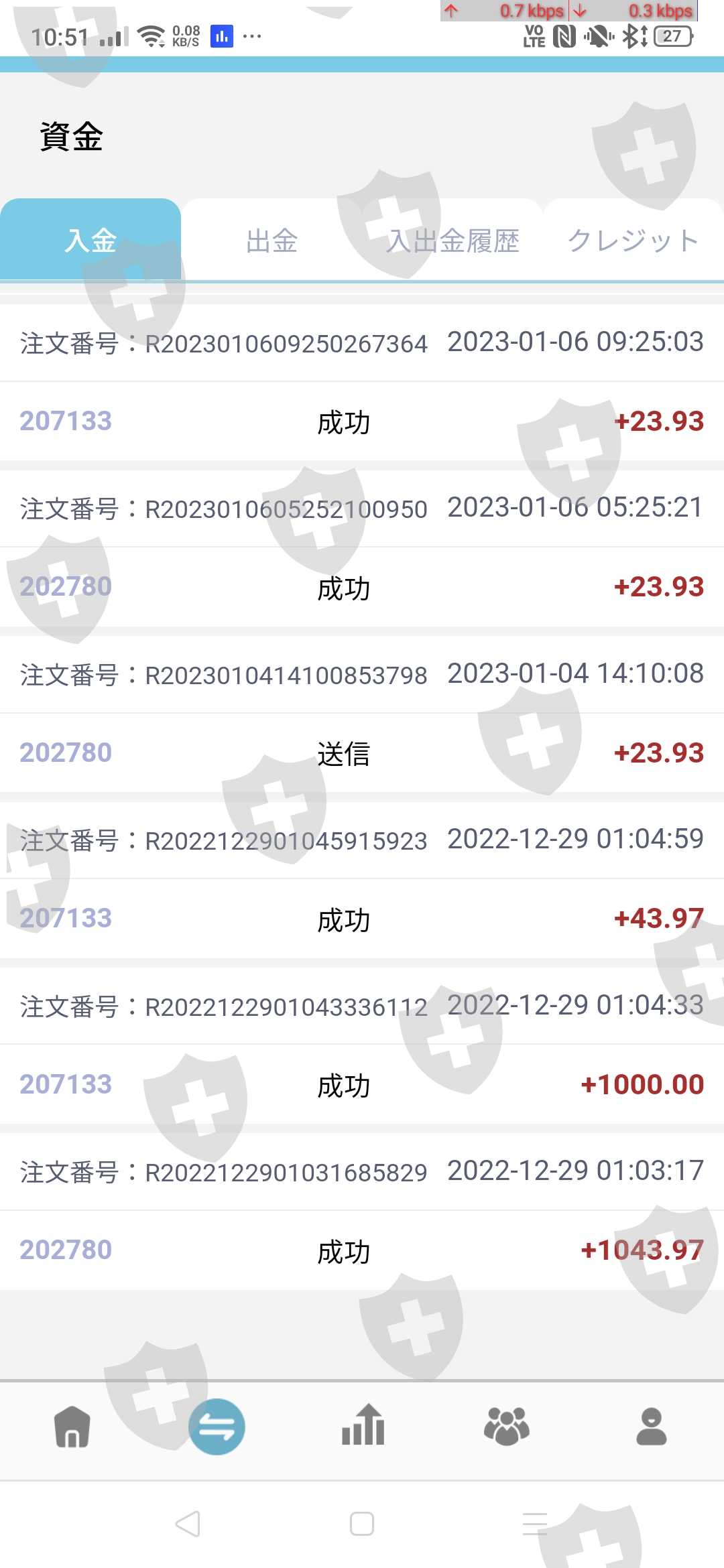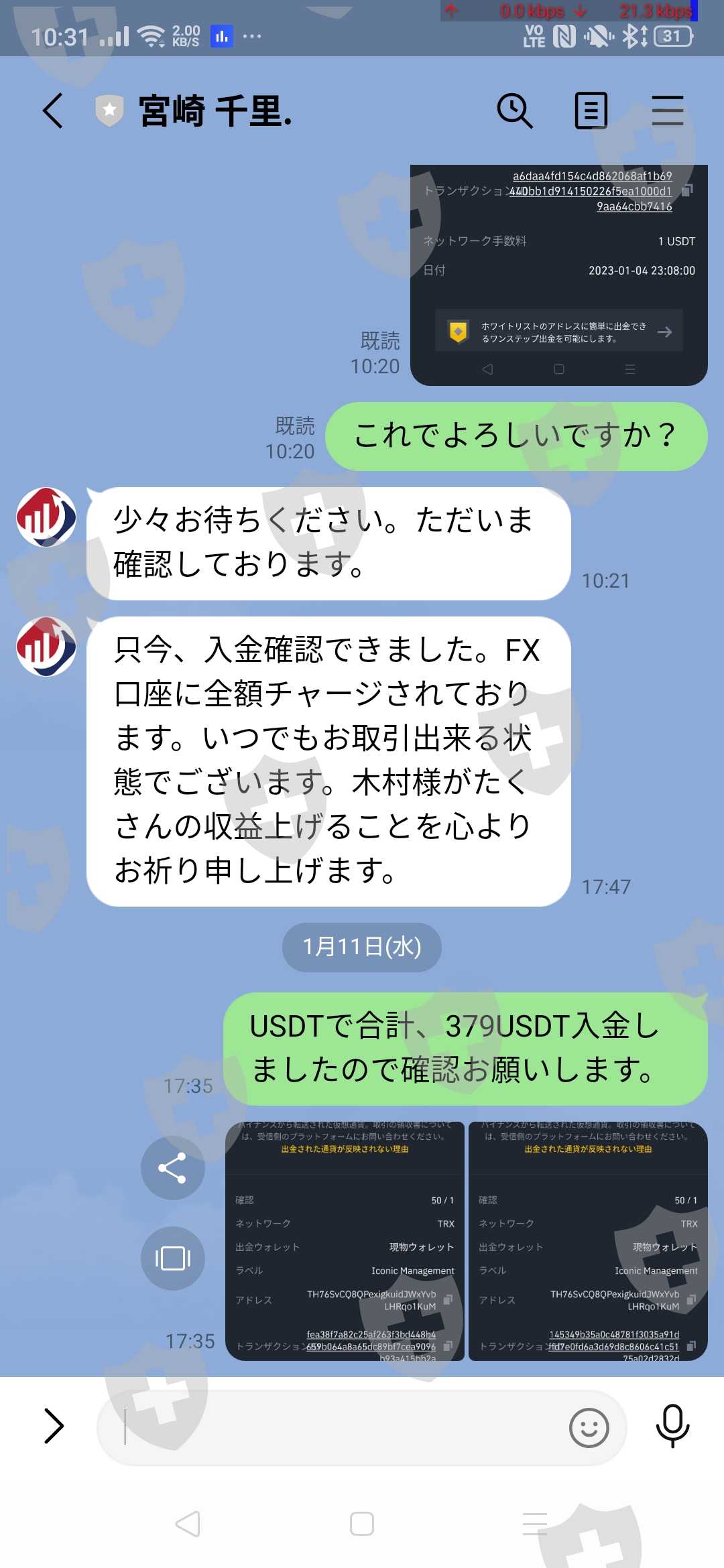 1 月 11 日,共有 379 USDT 存入 USDT。之后我通过LINE联系了负责人,但是余额没有反映出来,确认是诈骗。当我存入23.93 USDT时,我使用了聊天支持,但他们根本没有回复。我在 1 月 12 日查询时发生了同样的事情,但它没有变成已读。