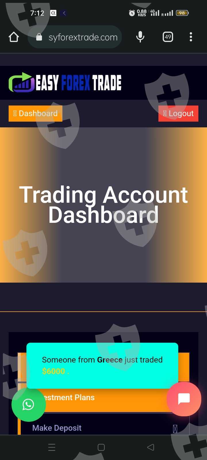 mr. jay hill chats with me every day and convinces me to deposit money on his platform and he says he will take care of growing my money and all I have to do is monitor my profit and that he convinces me because of the big profit and make a deposit I got 20k or $364 by gcash transaction and it hasn't been 24 hours yet, my easyfortrade account has a profit right away and it says I need to pay a transaction fee first before I can withdraw my profit. and here some evidence below..