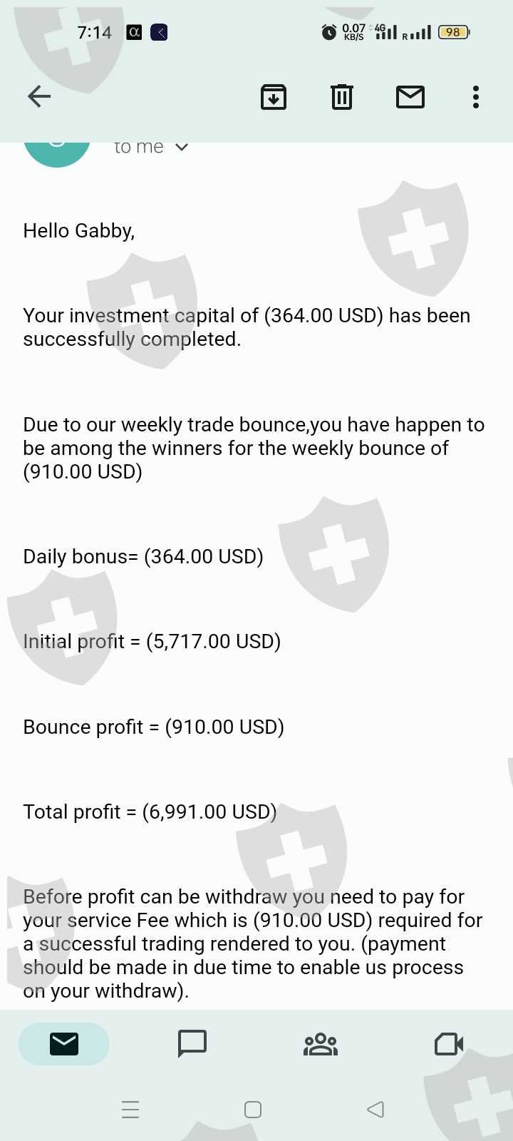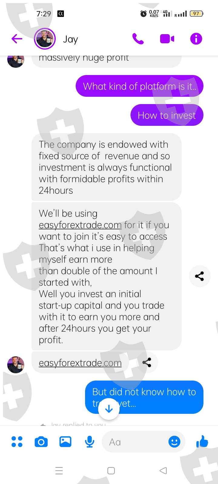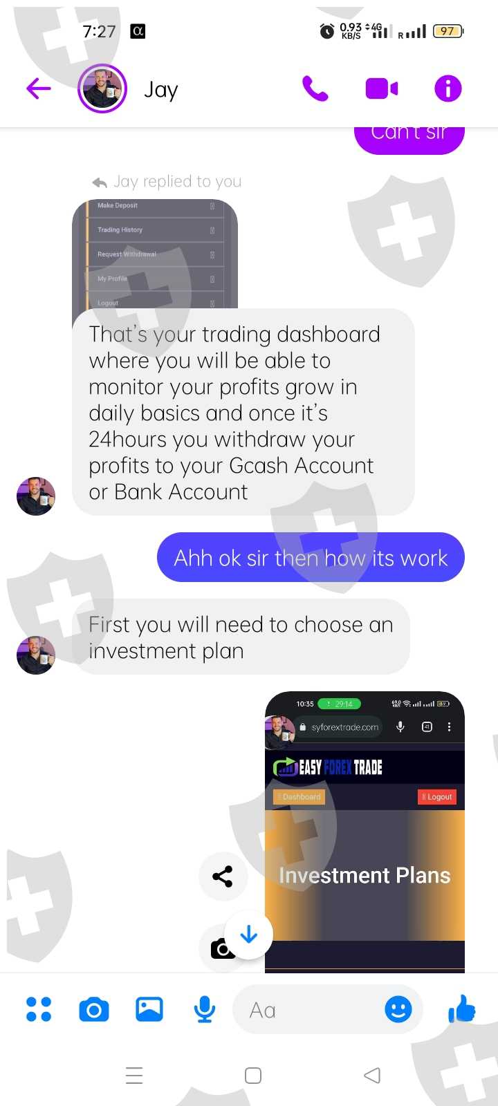 jay hill每天都和我聊天,说服我在他的平台上投资,他说他会看好我的钱,我所要做的就是盯着我的利润,他说服我是因为利润丰厚,赚了很多钱。我通过gcash交易得到了20k或者$364,还不到24小时,我的easyfortrade账户马上就有利润了,它说我需要先支付交易费才能提取我的利润。下面是一些证据……