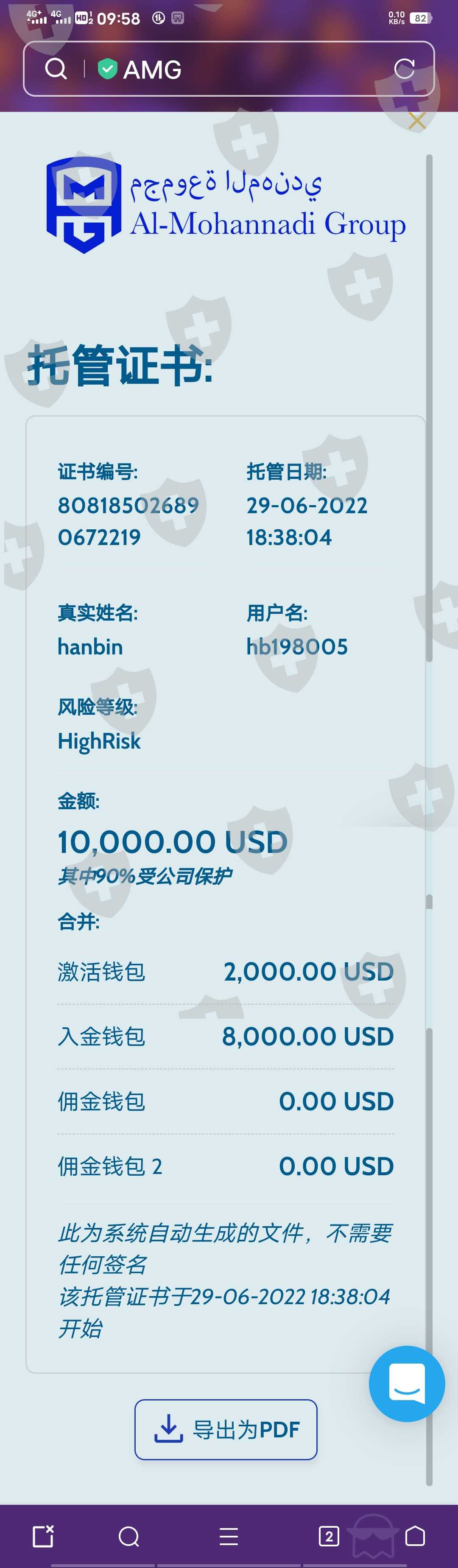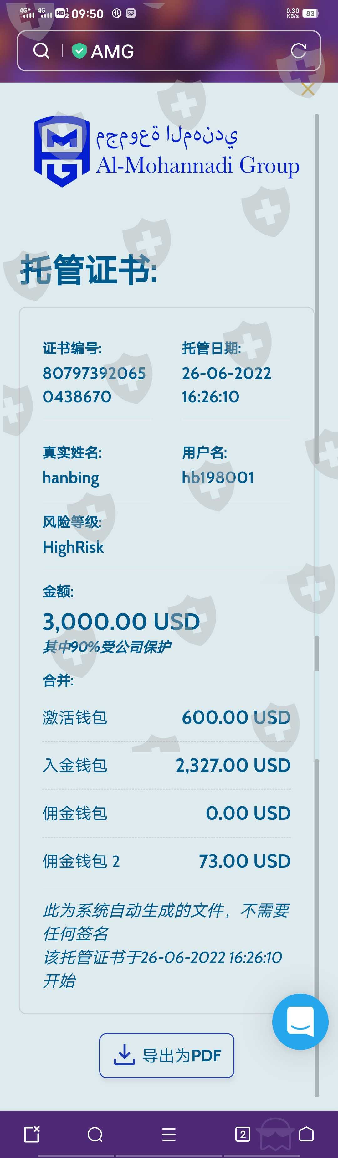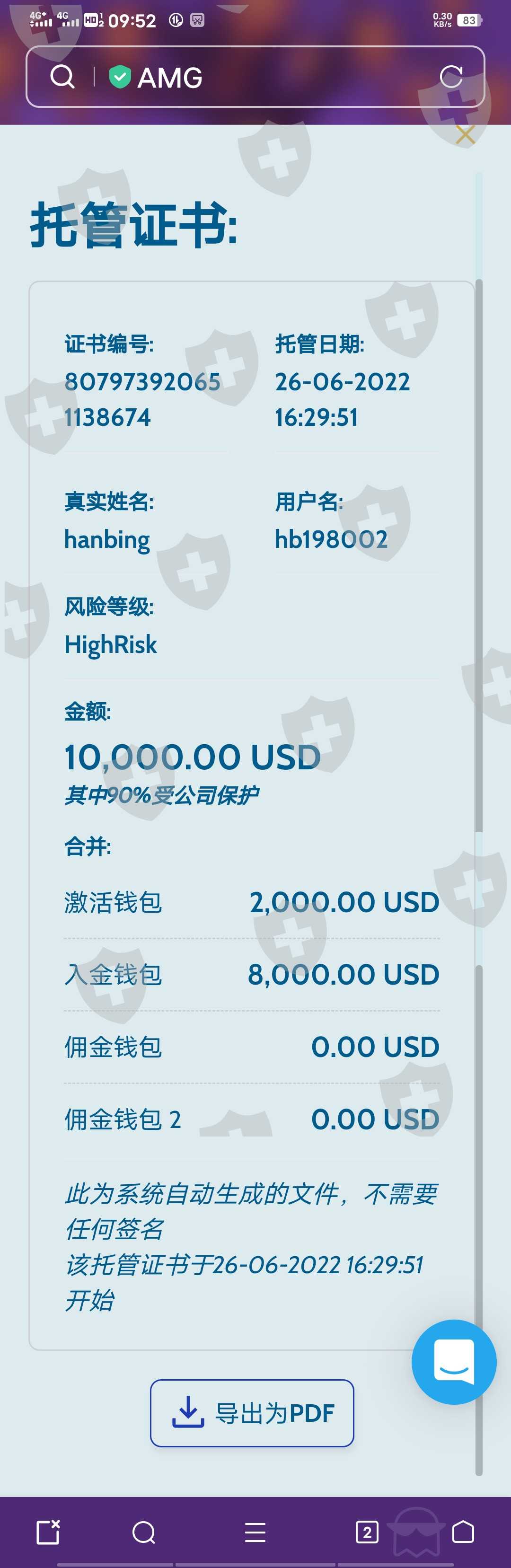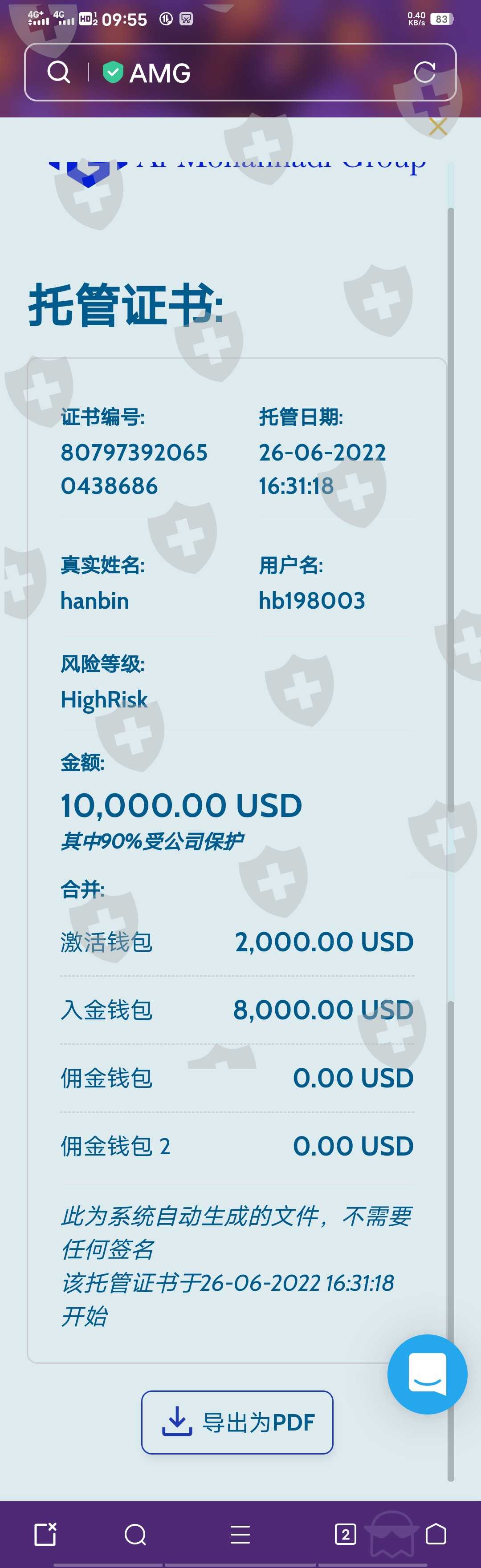 我在2022年6月26入金33000美金。6月29日入30000美金。俩次共计63000美金。全部都是贷款42万人民币做的。并且还缴了300元保护费。现在无法出金