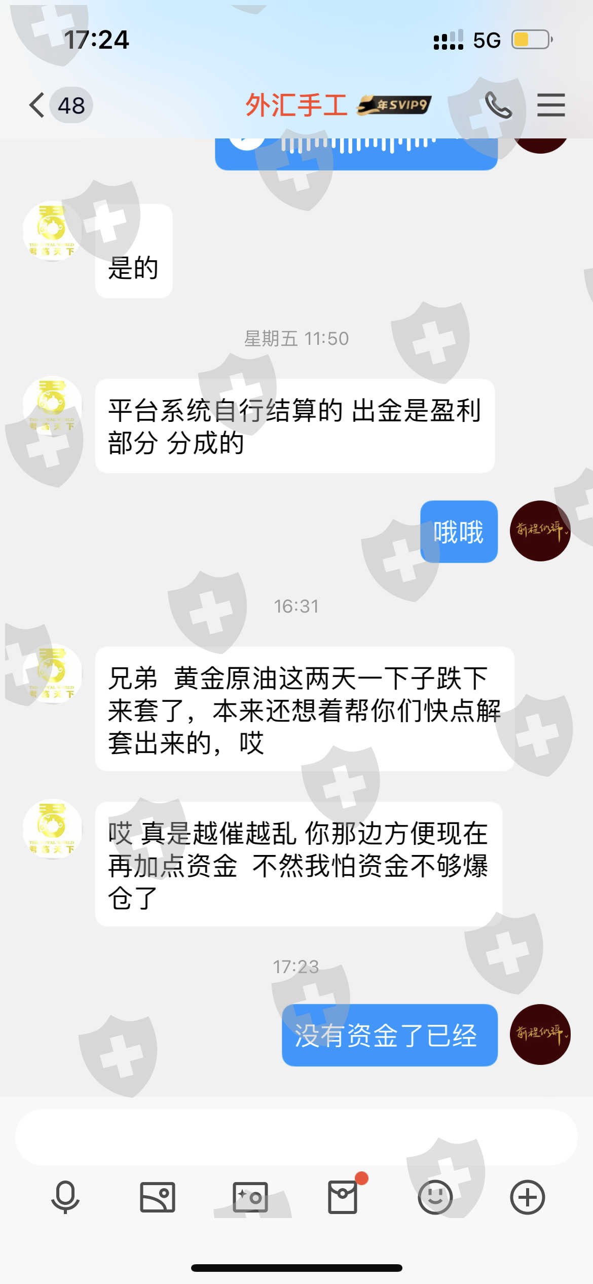 我要平仓不给我平 ,在我说要出金的时候,第二天就导致我爆仓,单子看不到,虚假交易,客服承认因为他的失误,导致我的单子看不到,严重怀疑虚假交易,客服维护操盘手不给我割单,