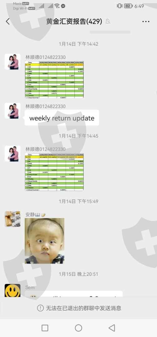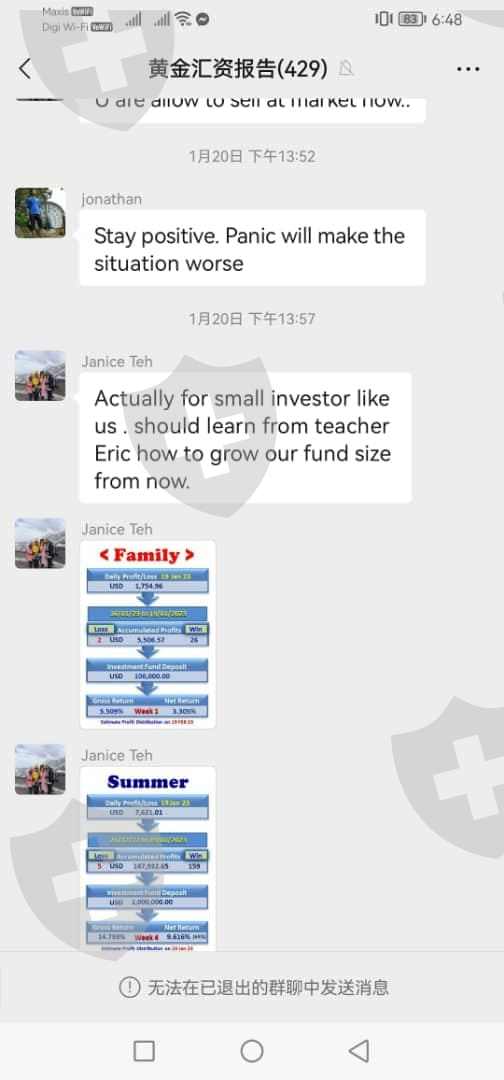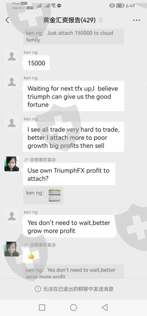 进了2000 美金,结果拿出来的时候说不能拿美金,只能拿他们的TFX, 但是现在只能拿到0.25 , 就是只能拿回25%的本金,血本无归,群里面还一大堆托在诱导你进钱。照片1,2是现在的TFX, 就是如果答应每个月给100U 的话,现在只给100TFX, 但是TFx 现在的价格是0.25照片3,4 里面的人一直安抚没有事的,要相信平台照片5,6 是管理层说这个星期发布了多少照片7 是现在的情况,管理层说会有特定时间,你们可以把手头的TFX 卖给我们,但是要看运气,结果很多人都拿不到,第一次听说拿钱还要看运气的。