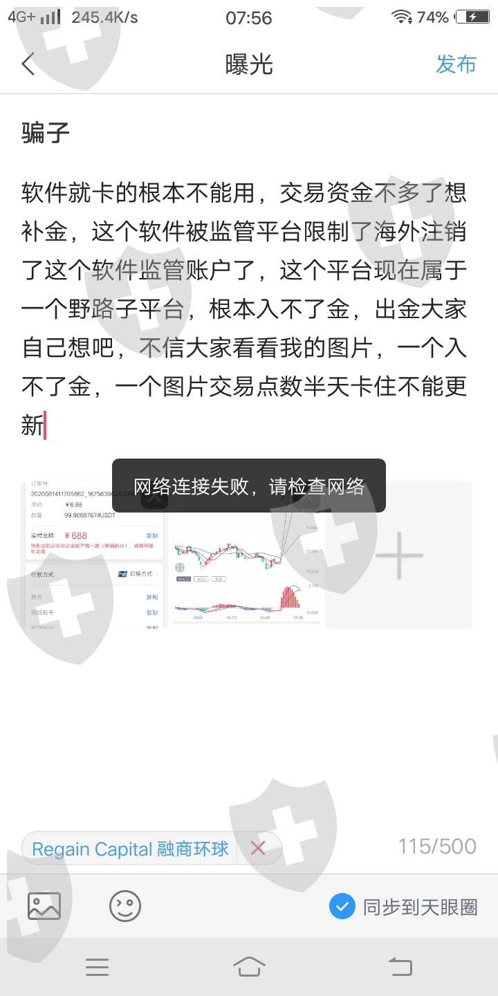 软件就卡的根本不能用,交易资金不多了想补金,这个软件被监管平台限制了海外注销了这个软件监管账户了,这个平台现在属于一个野路子平台,根本入不了金,出金大家自己想吧,不信大家看看我的图片,一个入不了金,一个图片交易点数半天卡住不能更新,