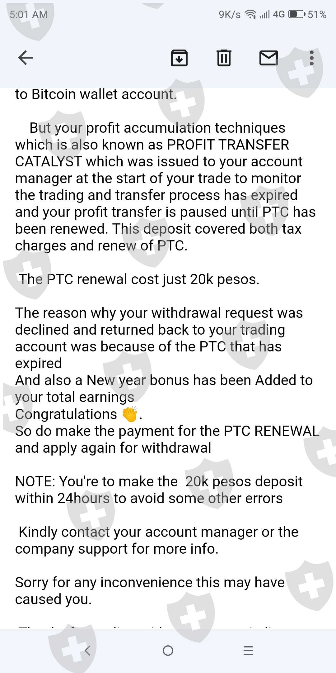 我也有同样的经历。 。在你提取你的利润之前。 。你需要支付费用。 。 。这太混乱和有压力了,因为付款后,一旦你延迟付款,他们会再次要求你再次付款