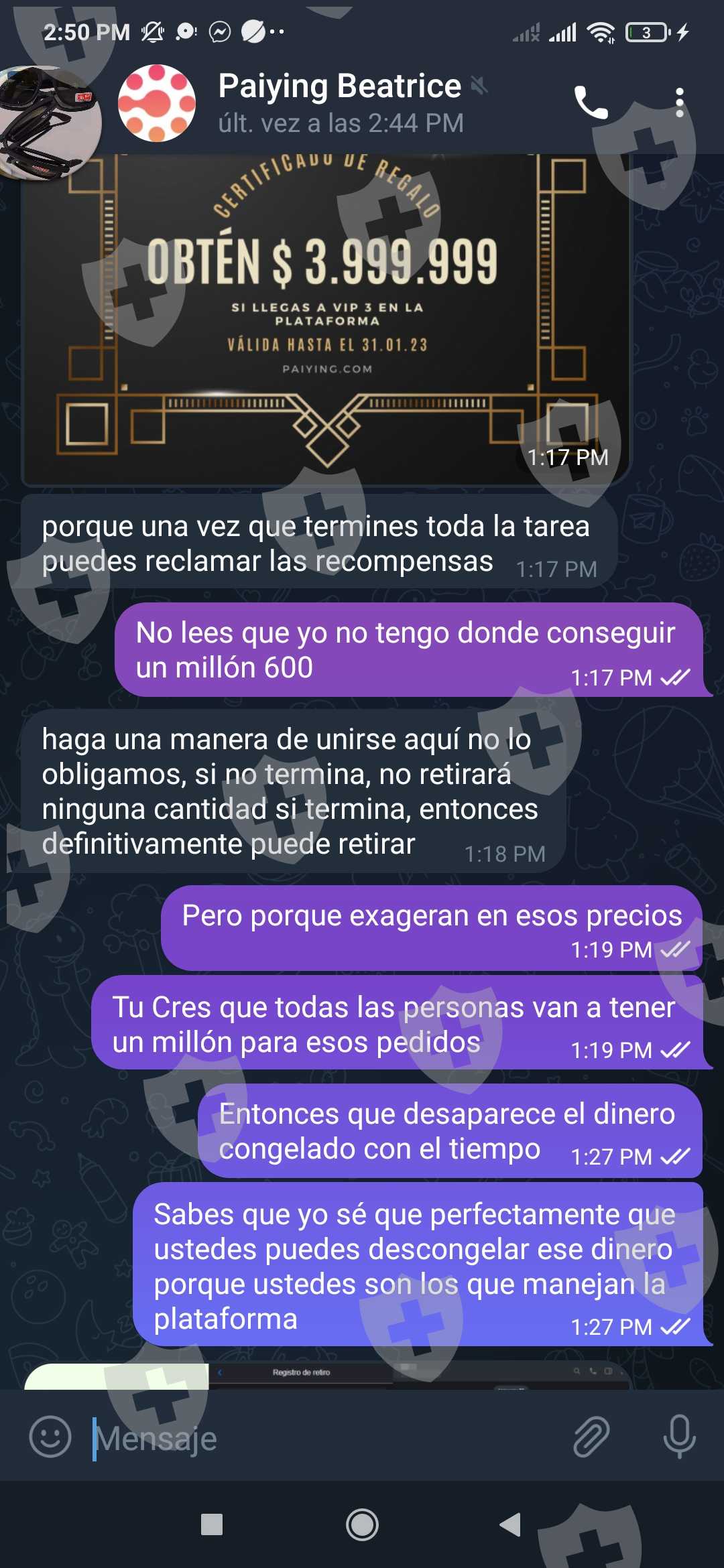平台是http://paiying789.com/ INDEX /user/register/invite_code/2n7rbw.html 调用自己 paiying 来自 INDEX你应该做一些帮助销售给供应商的工作,他们让你从 VIP1 存款,你卖得越多或完成订单,他们让你存款越多,直到达到他们要让我存款 600 的地步百万,我已经存入了 80 万哥伦比亚比索,我要求他们退款,他们不想再回答我了,他们甚至封锁了我的账户