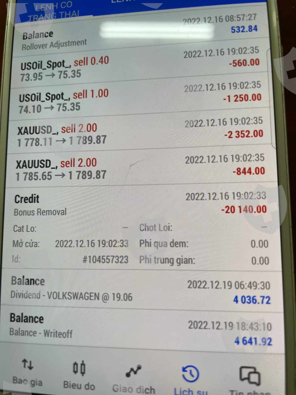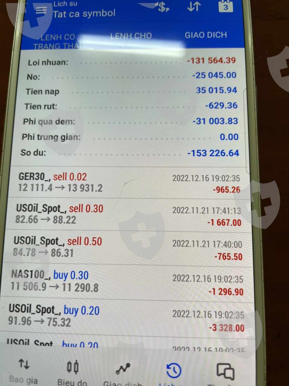 tôi đã lập tài khoản 7014296 trên sàn CH markets, nhân viên đưa lệnh liên tục yêu cầu tôi nộp tiền để cứu tài khoản số tiền tôi nạp vào tài khoản rất nhiều hiện giờ tôi mới rõ là sàn k tốt đề nghị ad can thiệp lấy lại tiền giúp tôi (tôi nghi ngờ nhân viên và sàn cố ý đưa lệnh bán mua giam lệnh, số tiền phí qua đêm quá cao khiến tài khoản của tôi bị cháy, tôi nghi nghờ nhân viên và sàn cố ý dùng chiêu trò dụ dỗ nhà đầu tư thiếu kiến thức như tôi) nhờ ad can thiệp và lấy lại tiền cho tôi tổng số tiền tôi đã nạp vào tk là 69k usd, đầy là băng chứng tôi đã nộp tiền vào tk