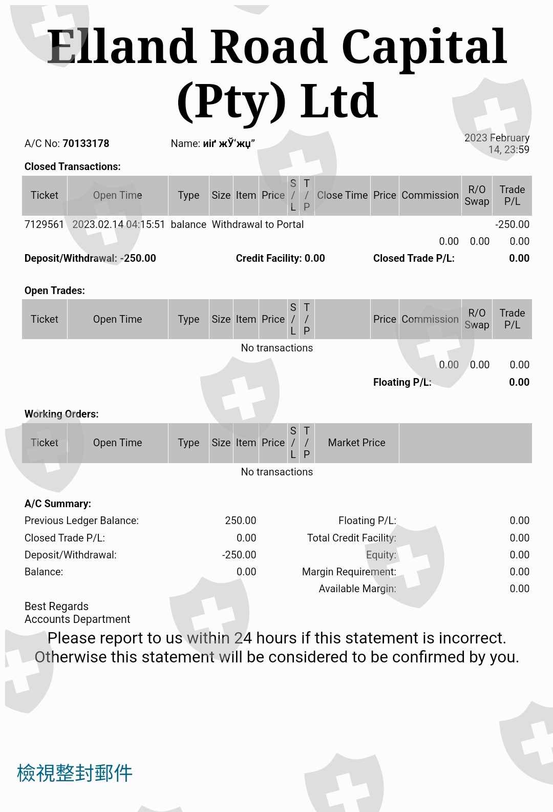 第一次接觸,電話中先引導我開戶250美金。之後我覺得不保險不想投資了,想把250美金轉出卻無法。