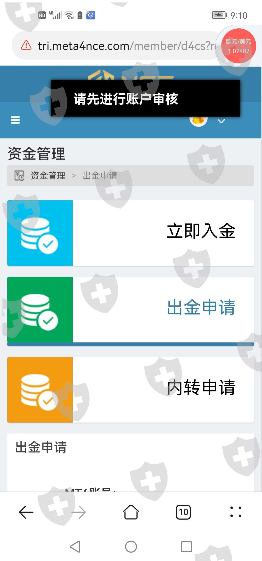 后台无人审核账户,无法出金
