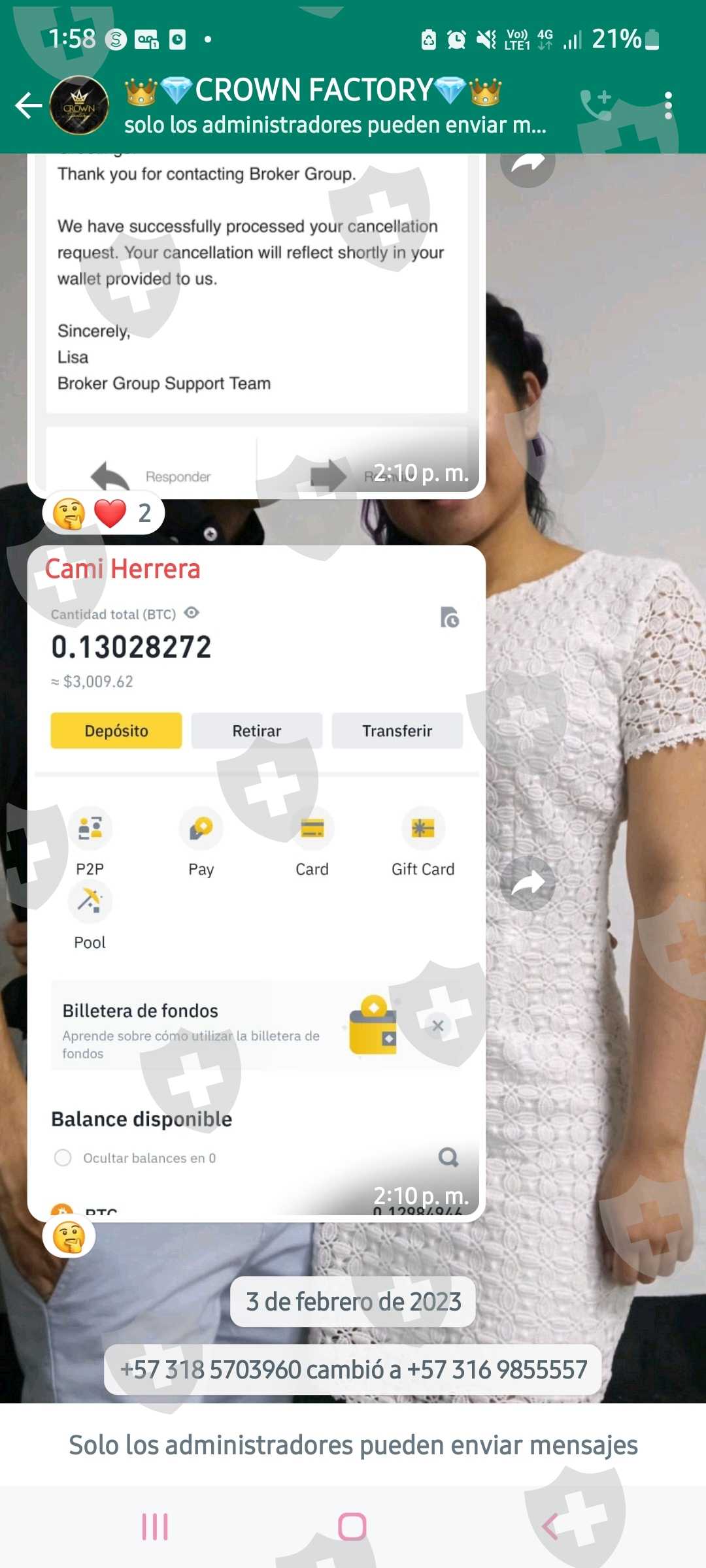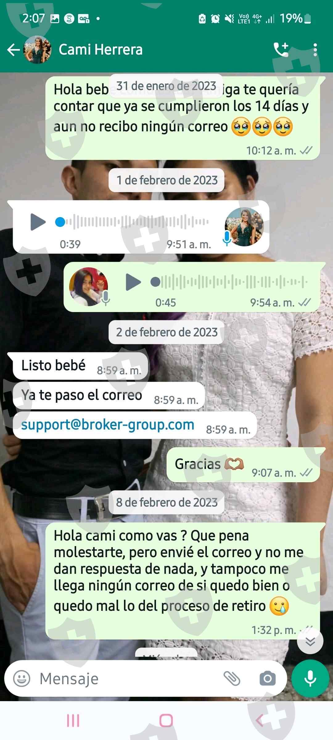 2022 年 5 月,我投资了我欠银行的 5,000 个单位,年底时在 6 个账户中,一切开始出现,但被黑客入侵,然后他们将所有信息转移到经纪人组,你应该决定是否退出你的钱或继续,我决定取消这 6 个账户,为此他们给了我 30% 的罚款,另外他们告诉我发送文件,证明他们在 14 个工作日内支付了钱,一个月过去了,并且``我的领导``的回复是我发了一封电子邮件支持我发送了我也没有回复,我再次联系她,回复是他们给了一个新的声明,那些没有地址的人我们房子的更新在发生的一切都不会退还钱之前,我们必须继续所有帐户并等待 6 个月让平台返回🥲 这不会发生,因为他们抢劫了我们,此外,在 WhatsApp 组中,只有管理员可以发送阻止我们的消息在。