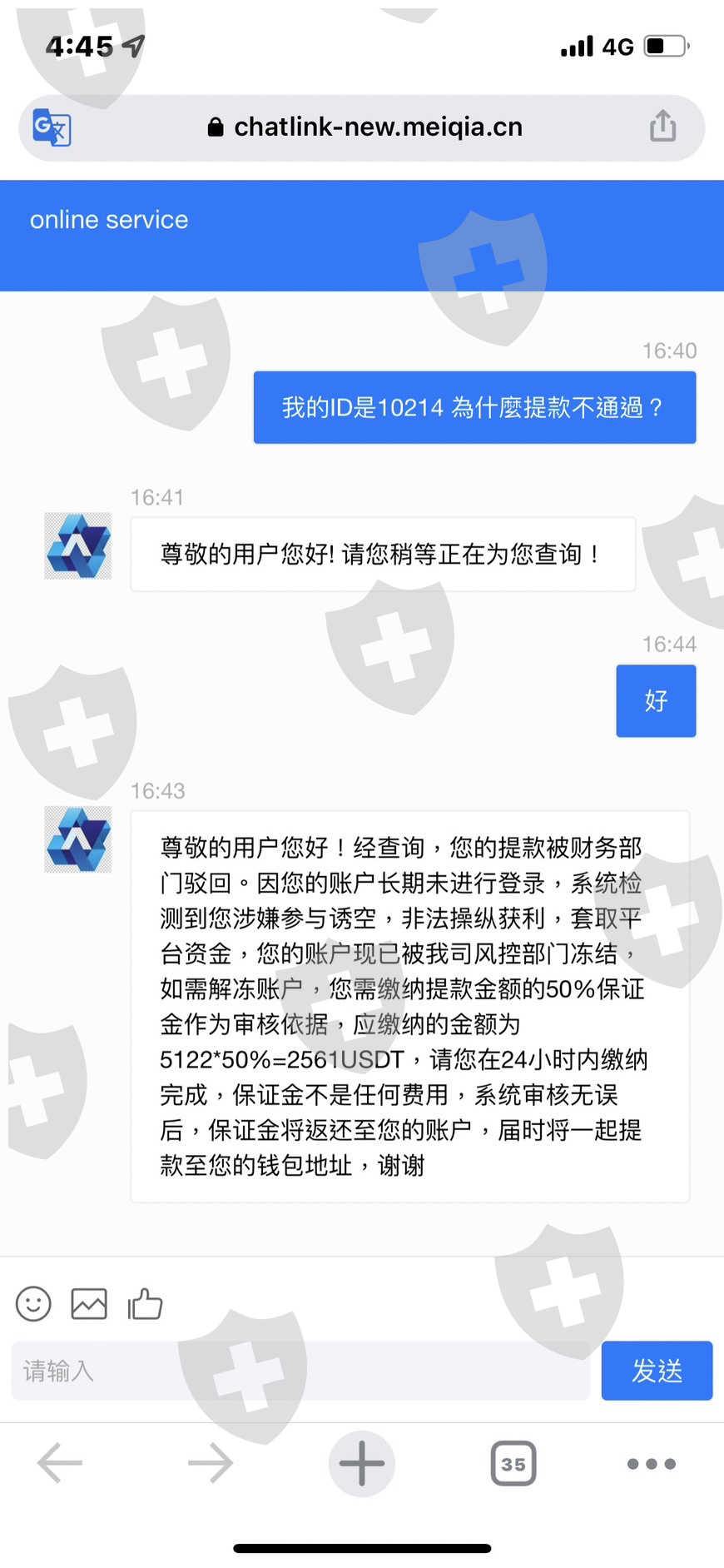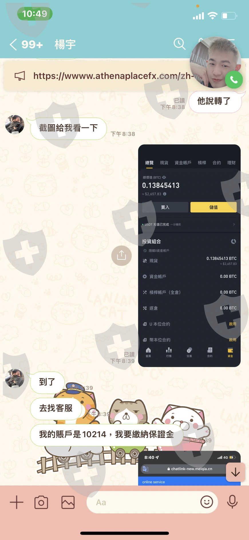 我是在Ig認識對方的 他說他在外匯上賺了一些錢 問我想不想賺 前面先小小賺 之後我第二次要取出時說我因為一段時間沒上線和我要求50%的保證金 我給了之後他又帶我做了一些操作 也幫我匯了20000USD 後續要領出時客服說有第三方資金的介入 要求我要給予第三方資金的保證金金額 我和對方說 對方跟我說被查到了 所以叫我去想辦法 所以我去借貸 第三方金額繳納後要取出時他說有私募基金會的人在後面操控 所以說懷疑我是內部人員 要求繳納20%保證金,現在我積蓄都投入了希望能夠幫幫我