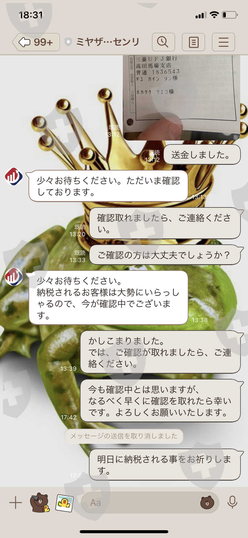 ただ今回の真相公開につきましては、2月半ばから納税出来てから、出金が出来ない以前に連絡が取れなくなった事についてであり、相手の口座情報も以前入金してた時と違う口座情報でもあります。