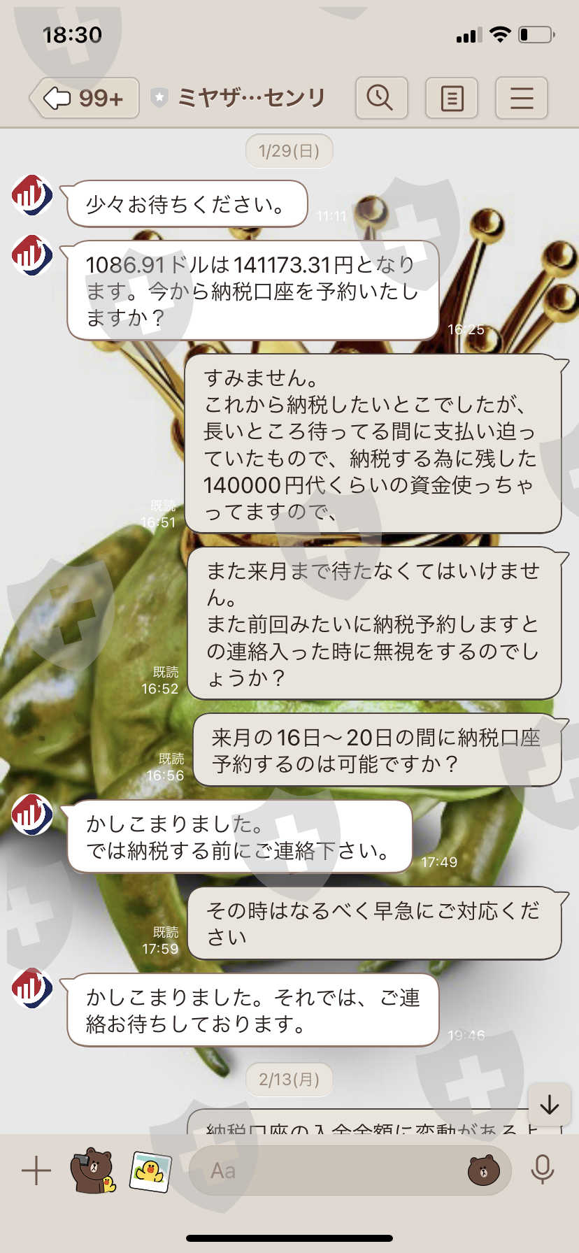 そして納税口座予約しますか?とお願いされた時にその時の日本円は全然用意されてませんでしたので、引き取ることになって2日後には連絡が取れなくなりました。