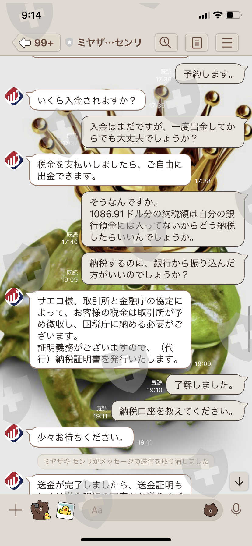 納税してから連絡がしばらく取れなくなり、挙げ句の果てにマネーロンダリングを疑われましたので、マネーロンダリングの疑われた場合は、来源の提示をお願いしますと言われました。