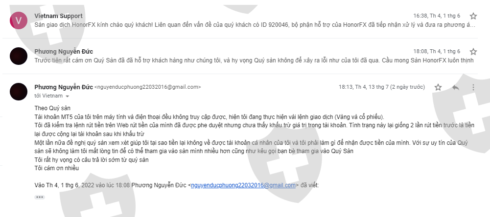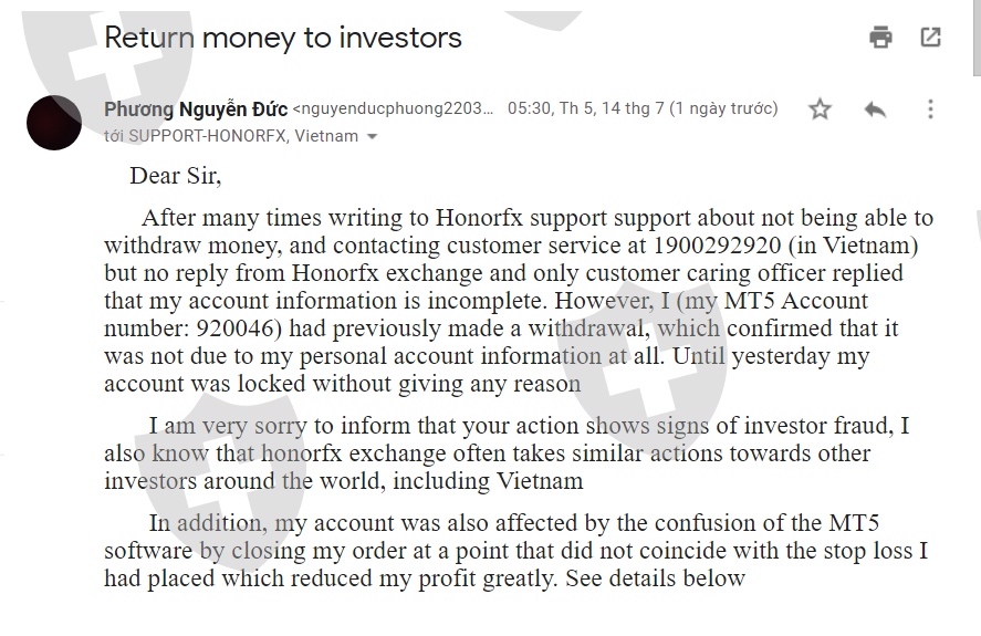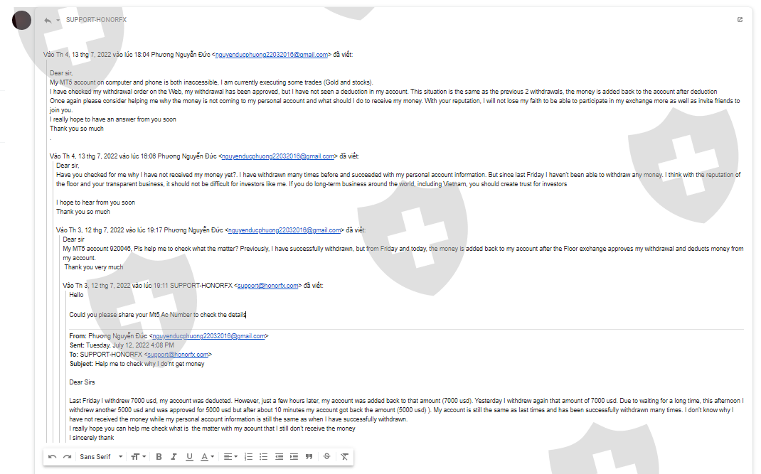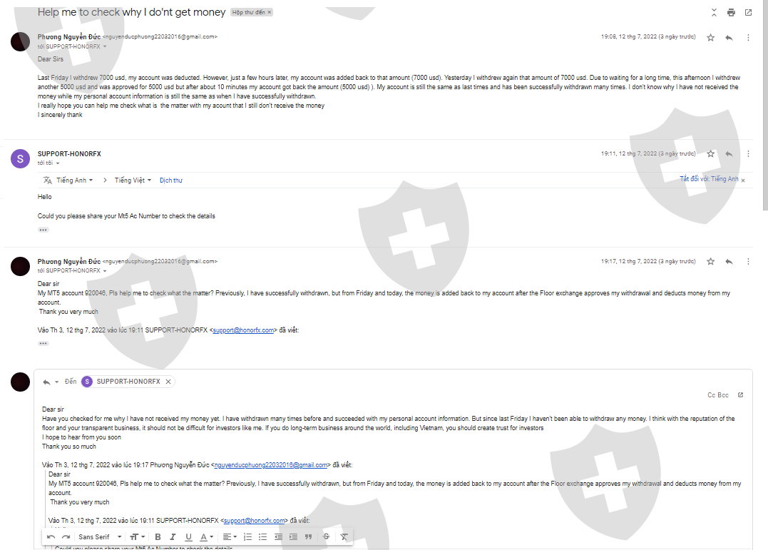 Đề nghị sàn Honorfx trả tiền như đúng cam kết