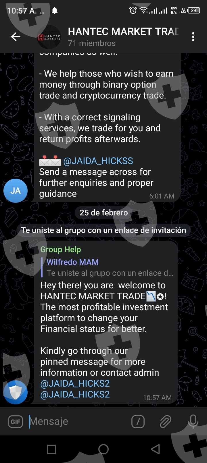 Desde Octubre del 2022 tome un plan de inversión con esta empresa para una ganancia determinada, luego de obtenerla y exigir mi pago oportuno comenzaron a surgir una serie de inconvenientes como, perdidas de señales y exigían 5000$, luego de ello se presentaban problemas para concretar mi pago y la negociadora Jaida se encargó de atenderme, ella siguió exigiendo pagos de 500$ por intentos fallidos al momento de pagarme mi ganancia, cosa que nunca ocurrió hasta hoy 25/02/2023 no me han pagado mi ganancia ni reintegrado mi dinero invertido 2500$ aproximadamente
