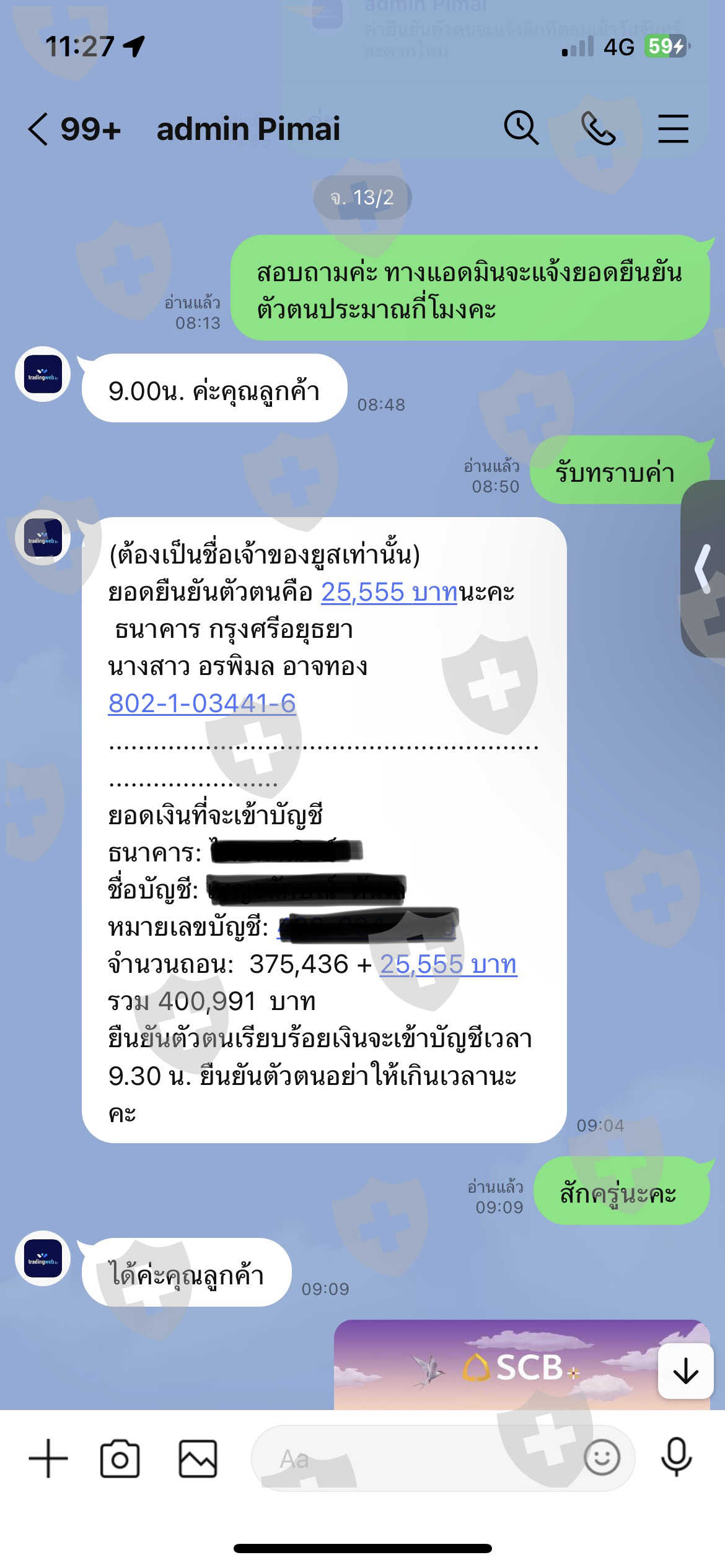 8. เมื่อถึงวันเวลาที่ได้ต้องได้รับยอด แอดมินเริ่มเงียบ ไม่ตอบไลน์ และหายไปในที่สุด