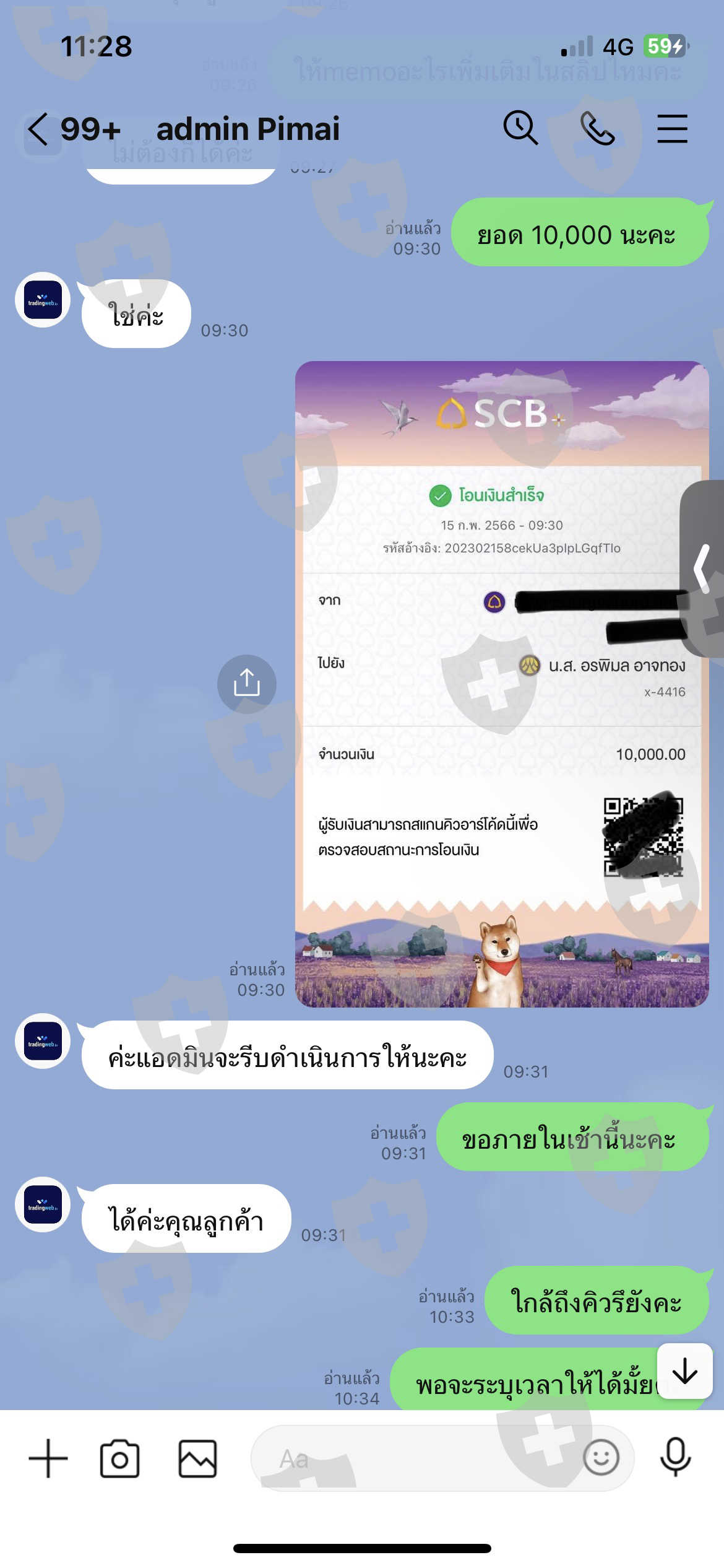 7. จากนั้นแอดมินเริ่มเงียบหาย เราจึงสอบถามการเร่งถอน โดนไปอีก 10,000 บาท