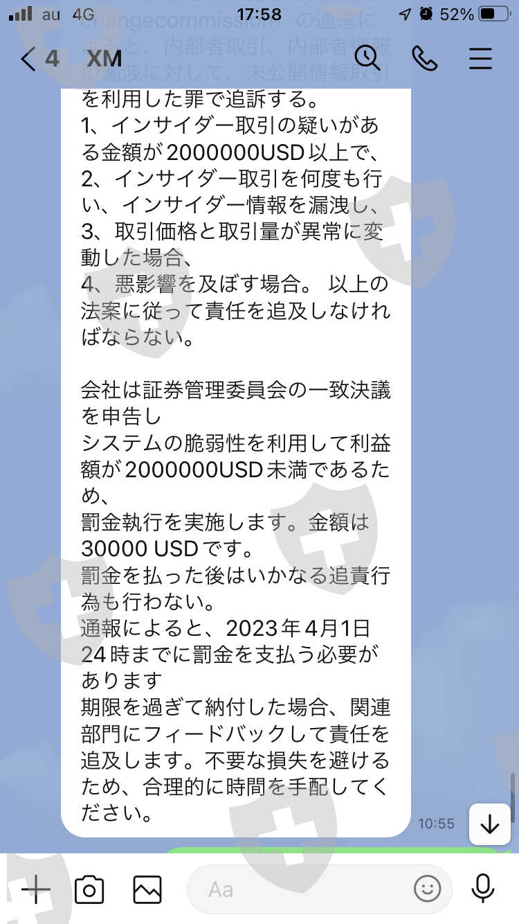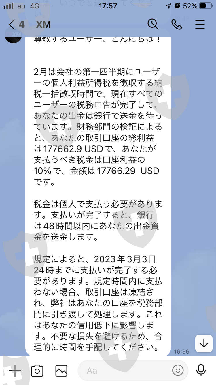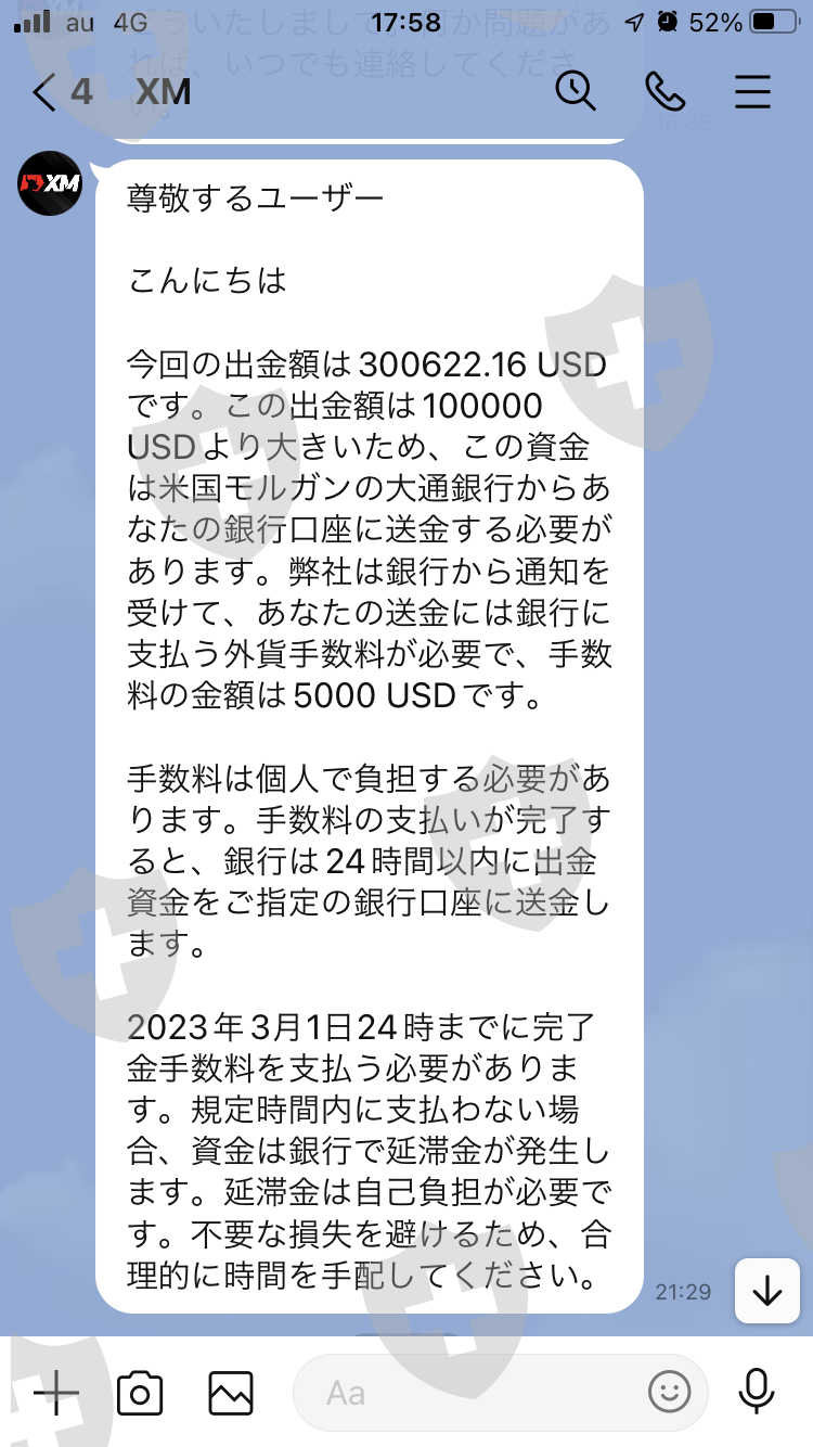 这是一家名为 XMUSA Global Limited 的公司。如果你要求提款,你会被告知你不能提款,除非你依次缴纳税金、汇款费用和罚款。如果你不付款,它将被冻结。就算付了也提不出来。如果你跟他们说你要像图片一样入金,准备好各种账户,入金完成就删掉。存款中,我竟然被骗了665万日元。剩下的就是支持一个自称是我在Instagram上认识的美妆公司社长的人,不过XMUSA涉嫌集体诈骗,所以有可能是一群人。我要至少退回665万。