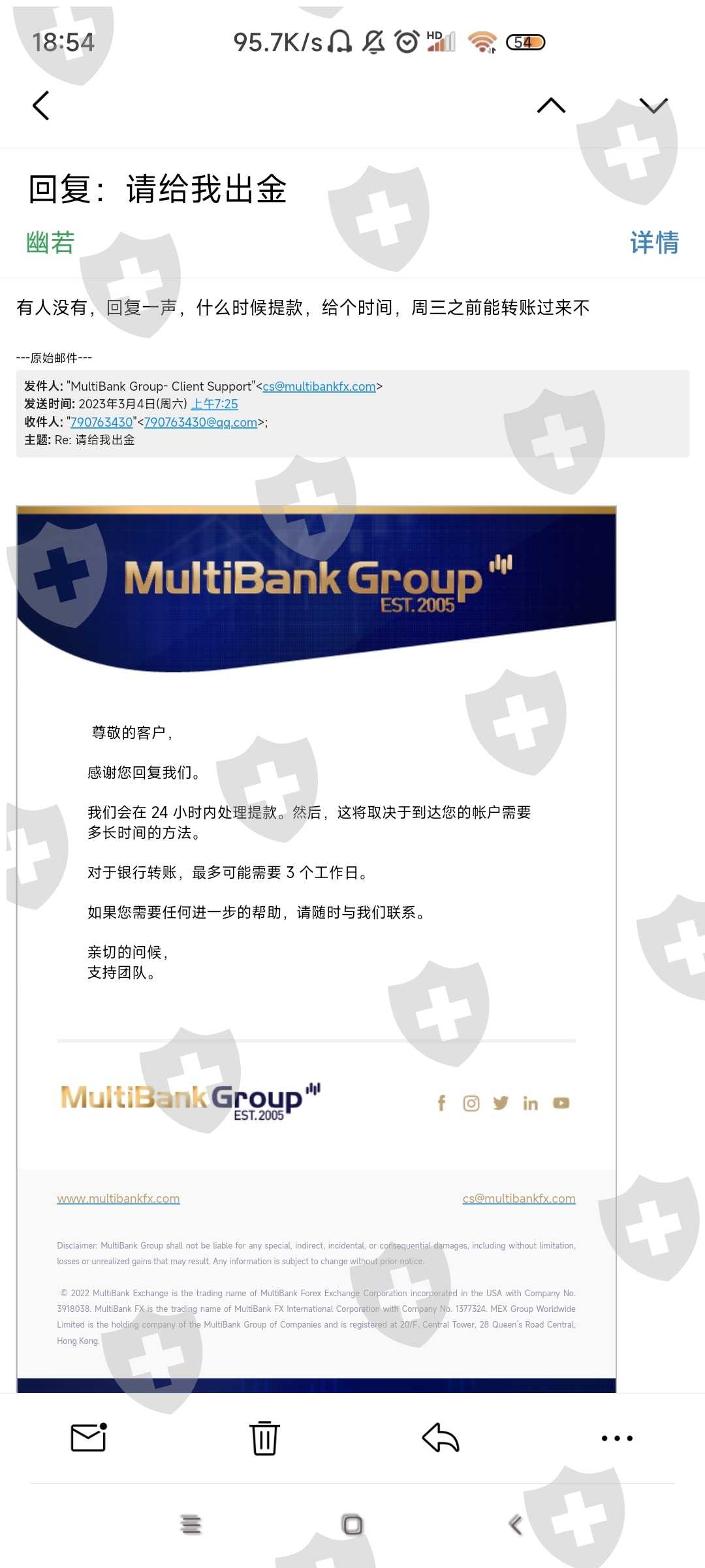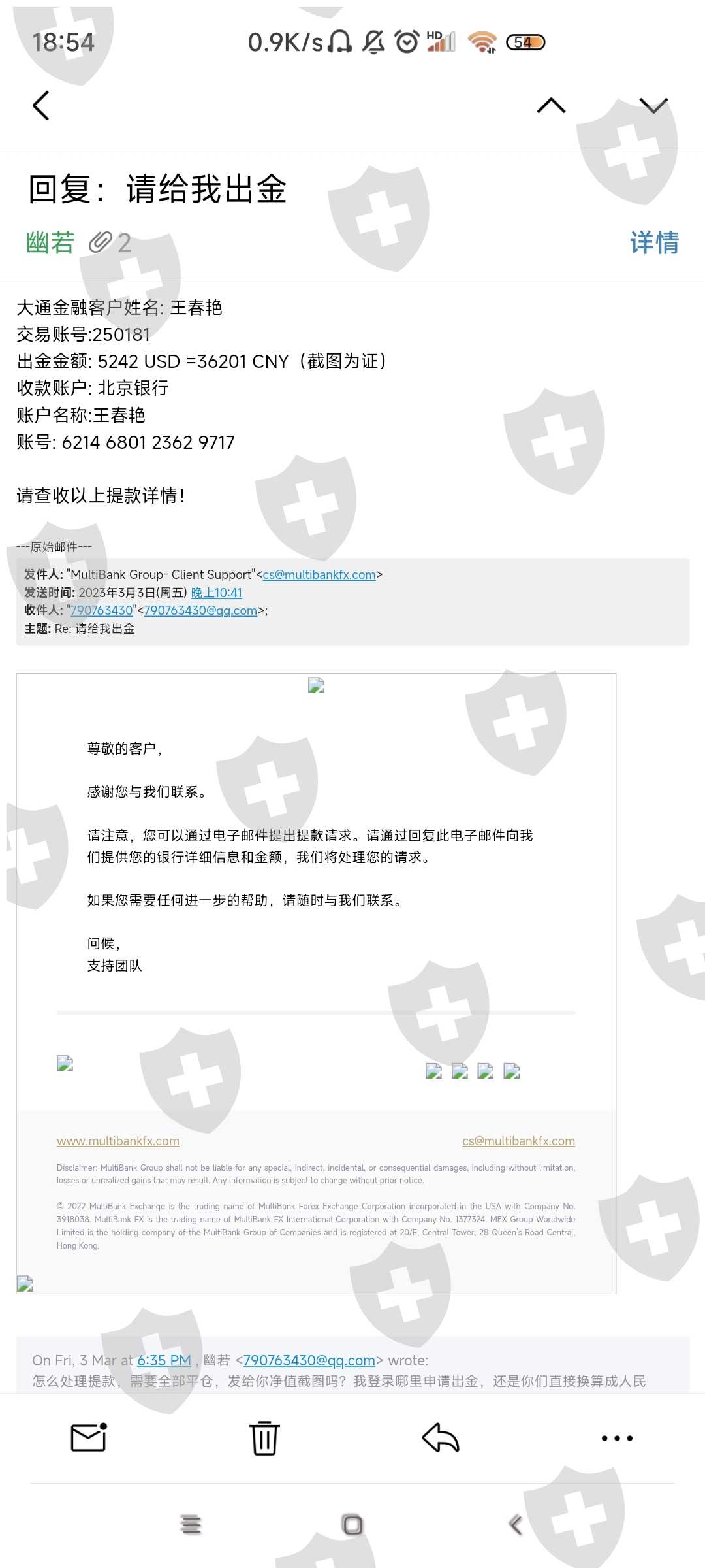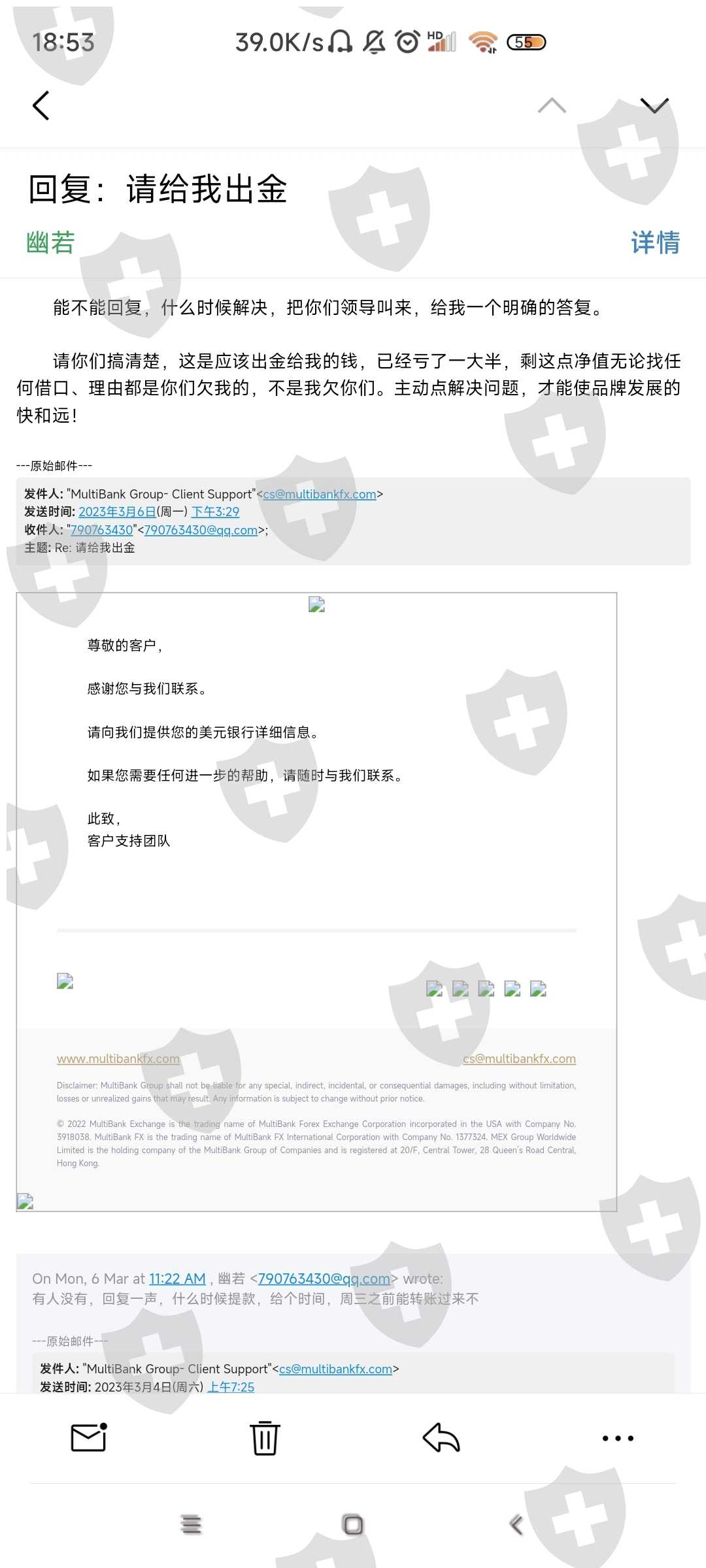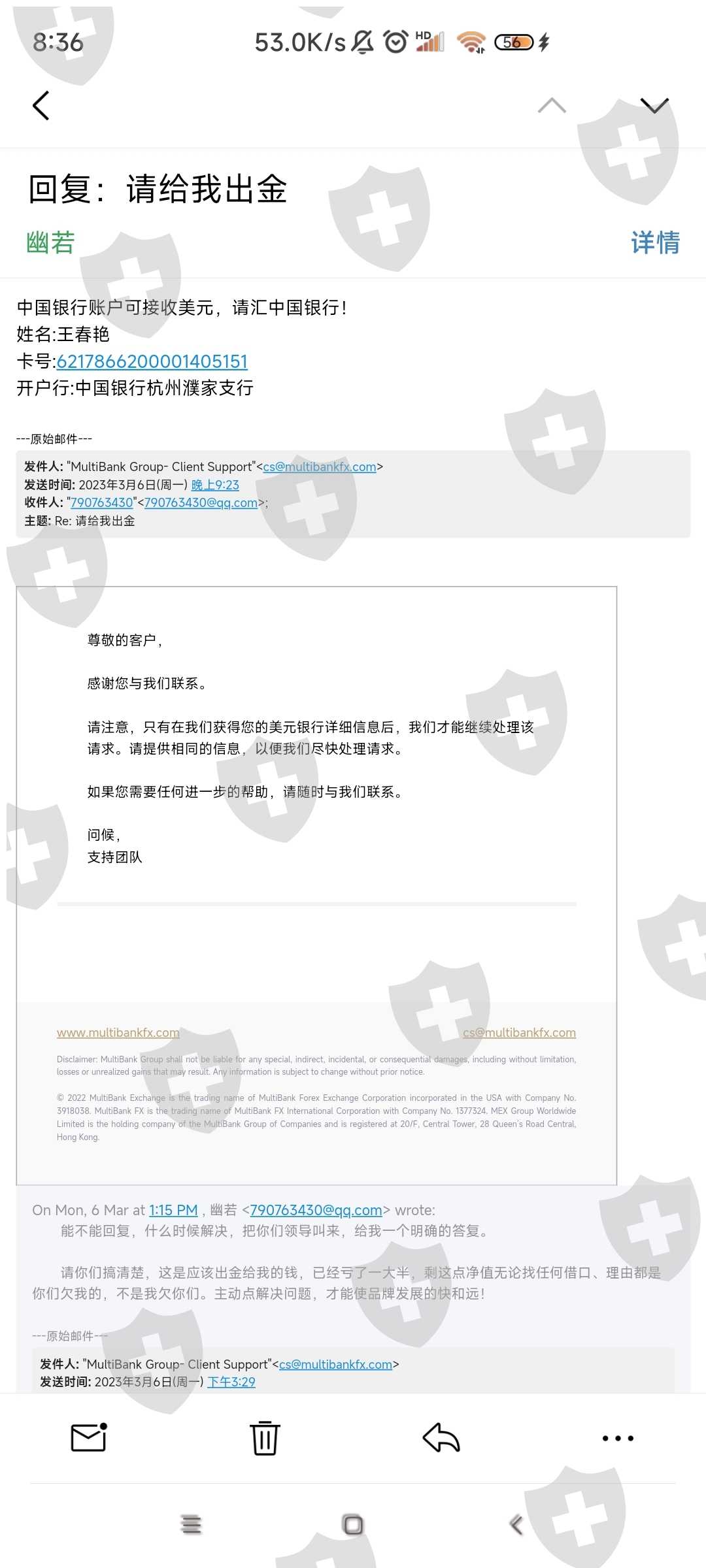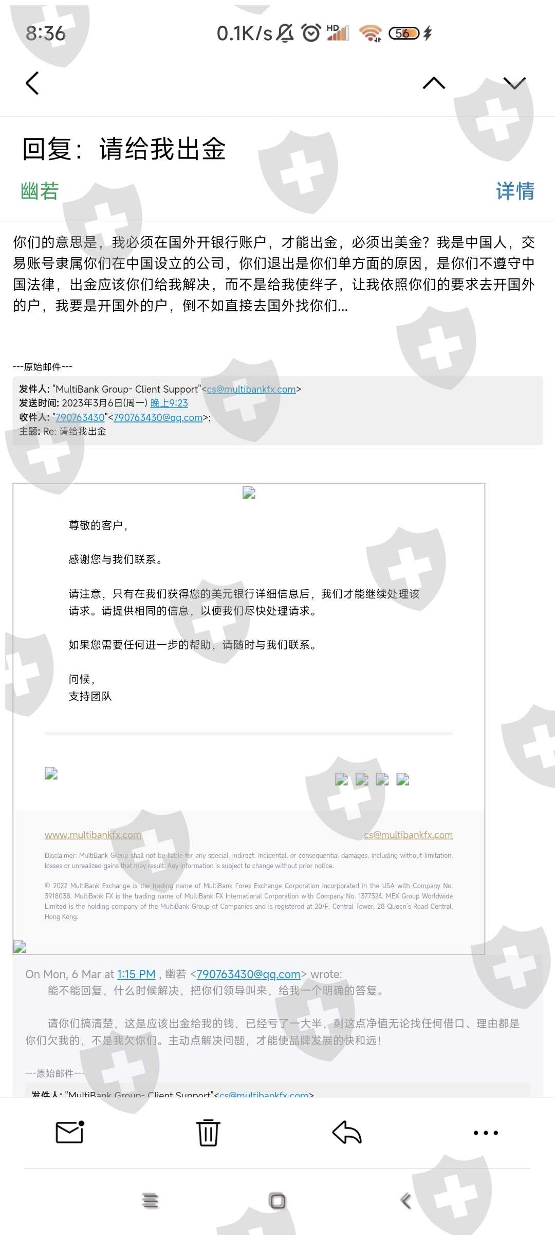 该平台消失一年半了,置千万中国客户于不顾,跑路卷走资金,又在国外上线了。国外朋友都看看,中国汇友的遭遇也许他们会重新上演,千万不能让这种垃圾平台再坑人。费劲周折联系上客服邮箱,却百般阻挠,各种借口,最后让我提供美元银行...我提供了中国银行,北京银行,都可接收境外汇款,他们却敷衍拖拉,这种说辞那种狡辩不肯出金,请你们长点良心,我要回属于我自己的钱绝对应该,5000美金你们至于要这么倒牌子吗?
