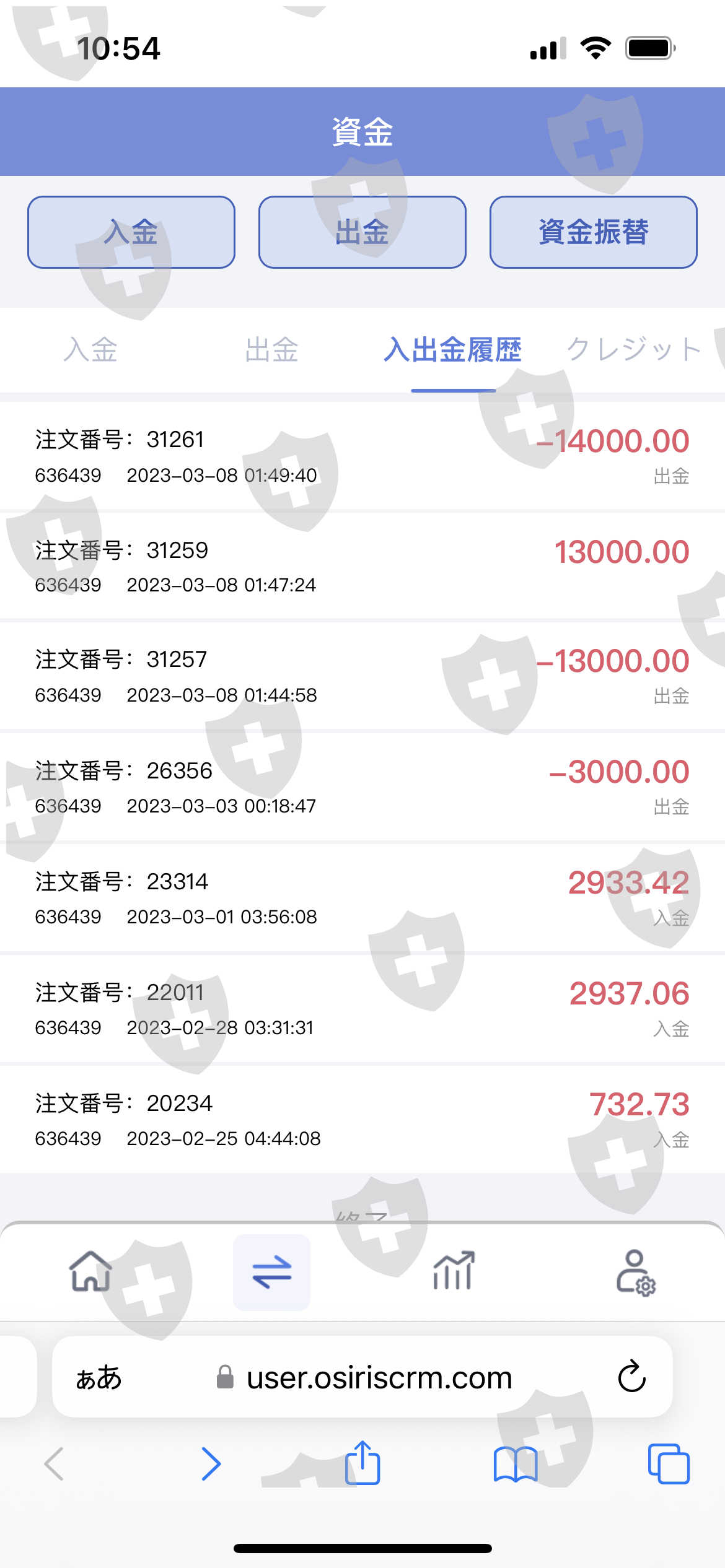 自从在 osirisforex 交易所开户以来,我存了三笔钱。目前(2023/3/8)在账户中$17205。我在 2023 年 3 月 3 日提出了第一次提款请求,但几天过去了,提款仍在等待处理中。账号:636439 账户名:YANG TAO 服务器:OsirisTrade-Server 自osirisforex本交易所开通设计以来,3次相互入金。截至 2023 年 3 月 8 日,总费用为 17,205 美元。 2023年3月3日首笔提款,卡内首付状态,不可提款。账号:636439 姓名:YANG TAO 服务器:OsirisTrade-Server