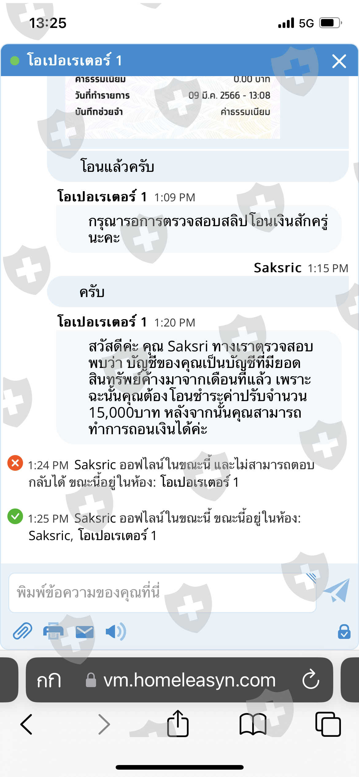 3. พอโอนค่าธรรมเนียมใหม่แล้ว บอกมียอดสินทรัพย์ค้างจากเดือนที่แล้ว มีค่าปรับ 15,000