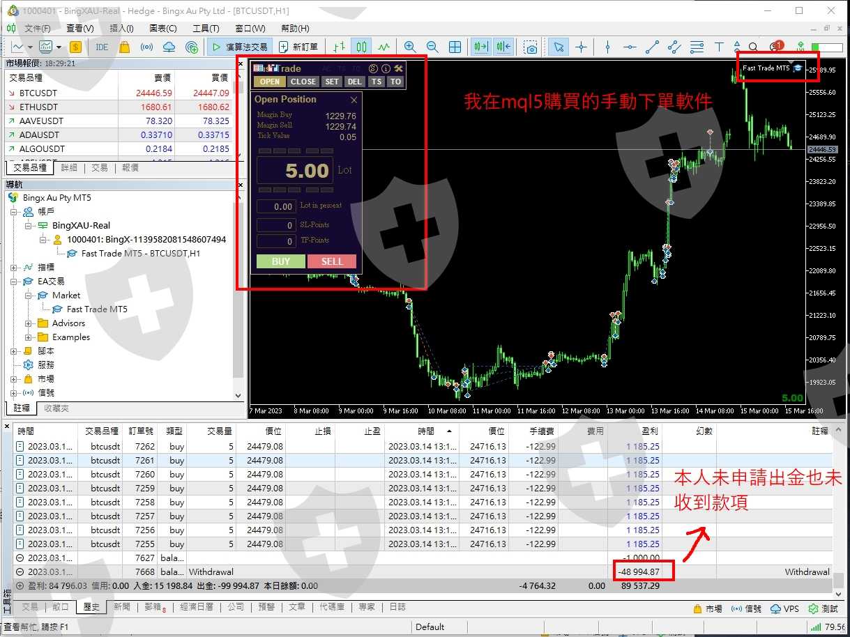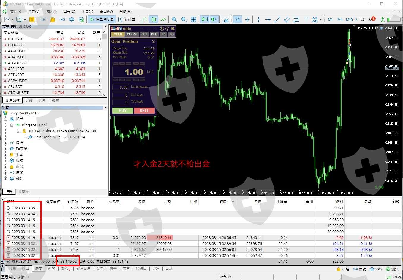 號稱全球最大加密貨幣bingx盜領我的獲利資金48994.87美金,及另一戶53451.43美金不給出金。有可能要倒閉了連幾萬美金都要到。請個位善心人士幫幫我轉發,告訴全世界交易投資人小心,不要辛苦錢被這樣騙走。bingx公司網址https://bingx.com/zh-tw/我接下來將將窮盡一切力量,透過法律及監管單位,及社群媒體。也請各位看到本文大哥大姊幫忙轉發,小弟先向你們感謝。我也有完整證據可提供。我已將我交易數據上傳到mql5以下是2戶交易數據。帳戶1000401被盜領48994.87美金。https://www.mql5.com/zh/signals/1853443?source=Site+Signals+My帳戶1000401不給出金53451.43美金。https://www.mql5.com/zh/signals/1894227?source=Site+Signals+Page服務器位置/帳號/密碼BingXAU-Real10004011qaz1234BingXAU-Real1001413m258789在此非常感謝外匯天眼能提供這樣的管道讓我們申訴,避免其更多受害者.........謝謝謝謝