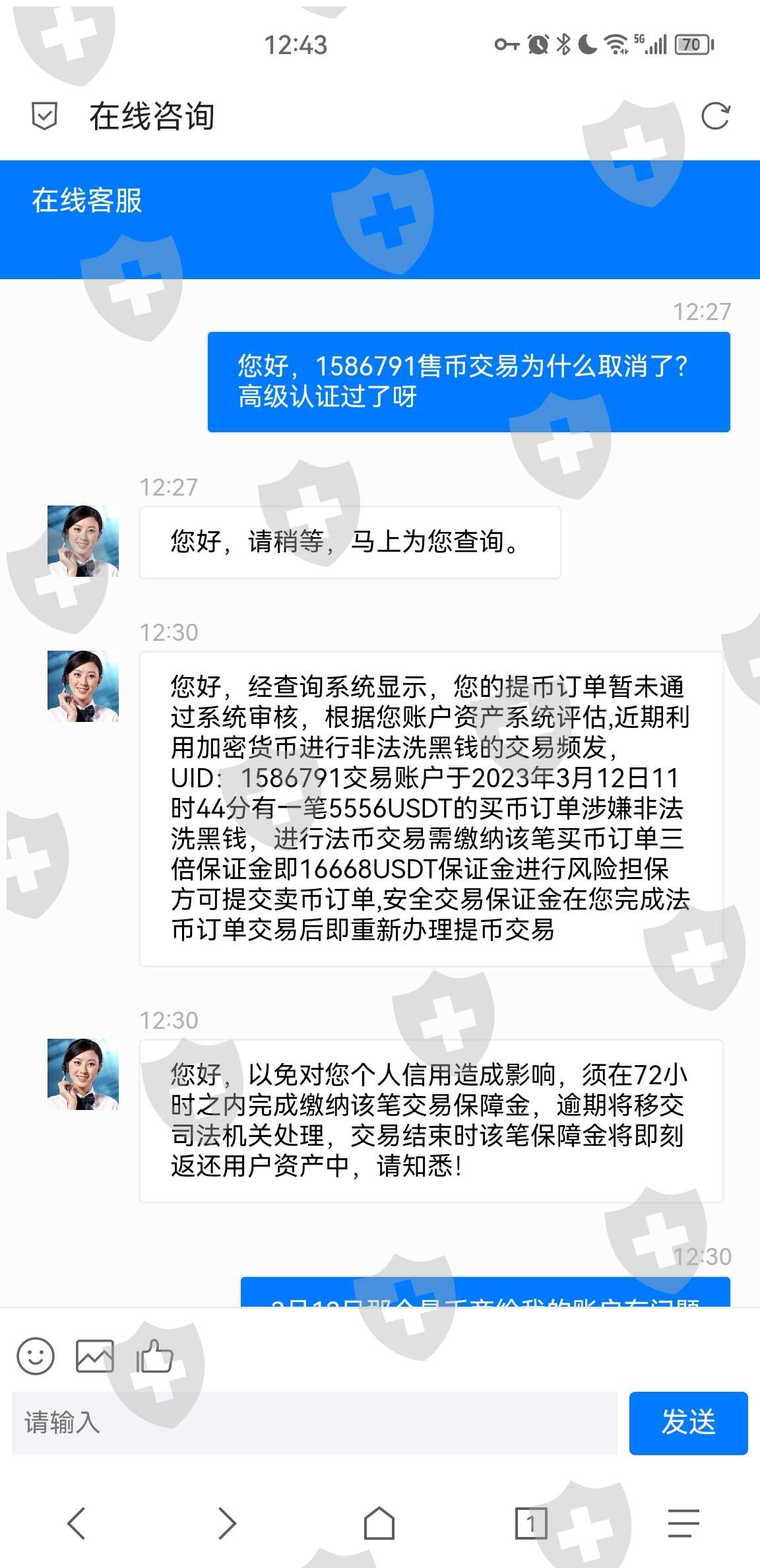 自3月18日开始先后因为支付高级认证,信用评级,保证金等原因缴纳二十余万,平台声称之后可以一同提出,3月21日申请提币通过后,要求缴纳汇率补差三万余,3月22日补齐后再次拒绝提币,并要求开通绿色通道。