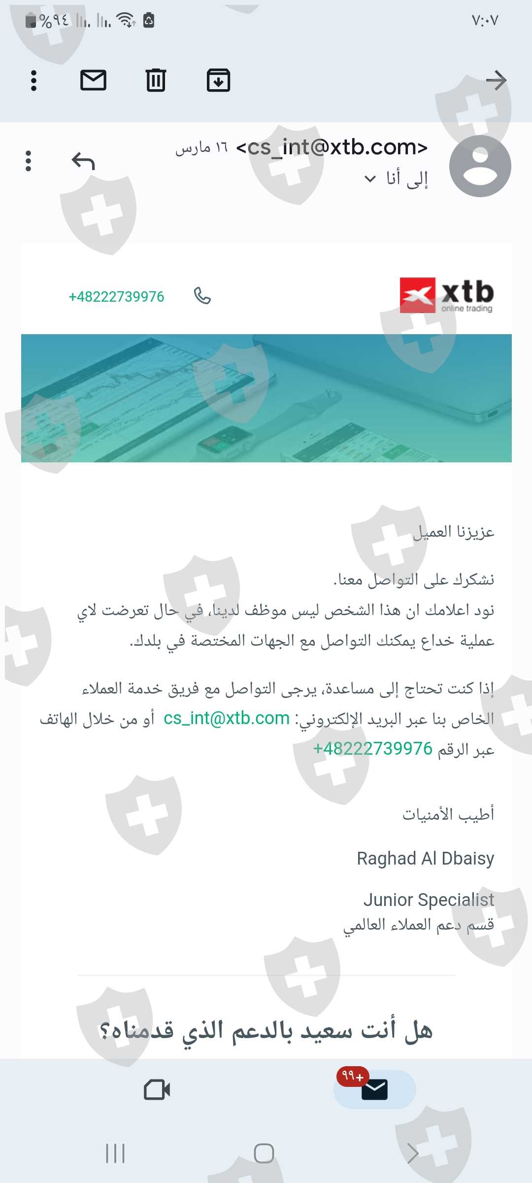 برجاء الحذر الشديد لكل من فى مصر والدول المجاوره هذه الشركة تقوم بعمل شركات مع وسطاء محتالين يوجد شريك بمصر لهذه الشركة اسمه محمد كامل السيد يقوم بعمل دعاية بجروب خاص به بالتليجرام لنسخ الصفقات ويقوم بعرض حسابات عديده خاصه به ليوهمك بالربح حتى تقع معه ثم يقوم بتخسيرك اموالك ويخبرك بأنه لم يوعدك باى شئ ورفعت شكوى للشركة بها كل المستندات فالبداية انكرو معرفتهم به ثم لما هددتهم بعمل شكوى فم