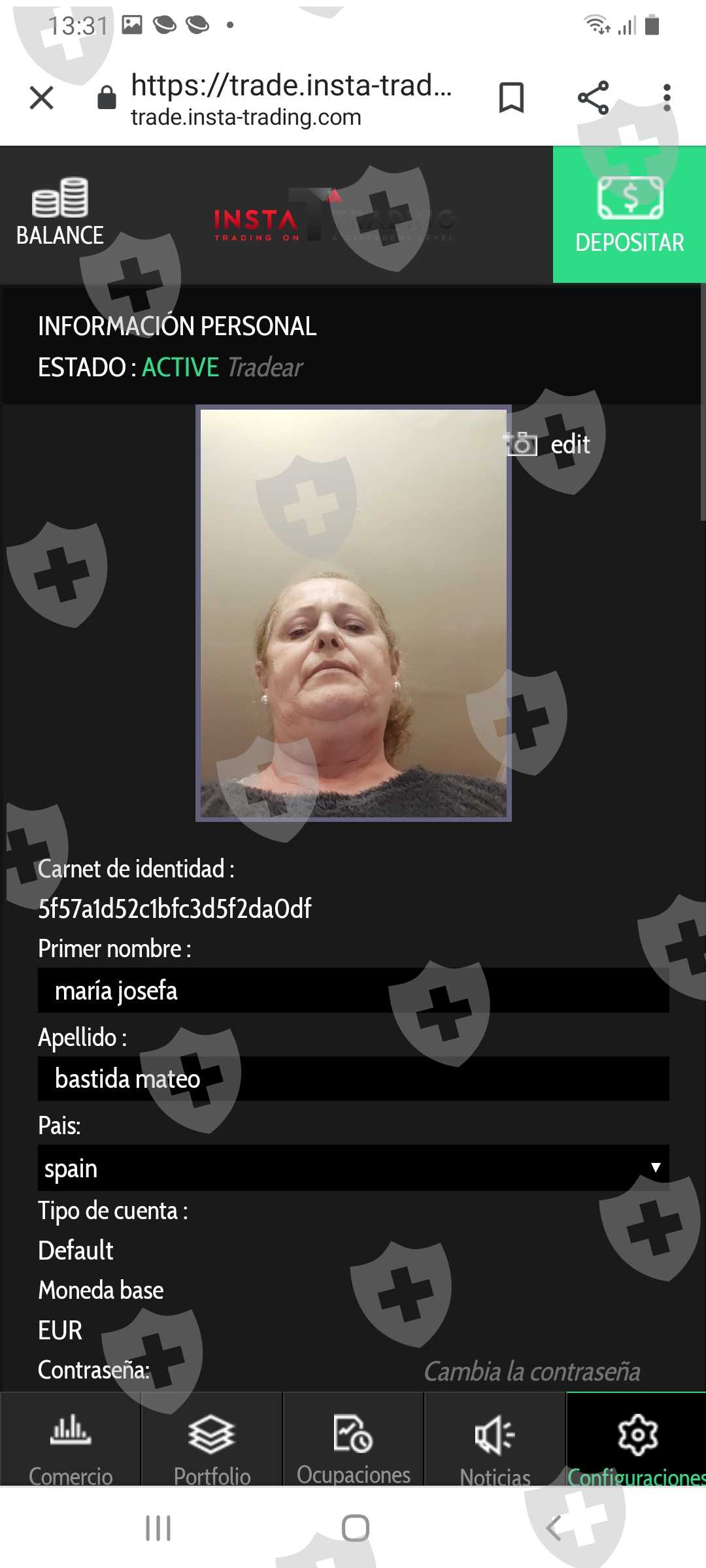 我在我的账户里投资了20,000多欧元和75,000多欧元,他们不让我取款,他们还试图从我父亲的账户中转出29,000欧元。这一切都在 Insta-Trading.com。我总是与 Carolina de la Rosa 沟通,然后是某个 Saul,他告诉我必须进行的转账,以便进行提款,但从未发生过。第一份收入是信用卡,然后我不得不申请贷款,我联系了 cnv,Victoria Pereira 通过 anidex 从我那里偷了 5 笔 1000 欧元的转账,为什么我必须先付款才能收到我的钱。所以他们总共骗了我超过 25,000 欧元。所以我想请你看看你是否可以帮助我。