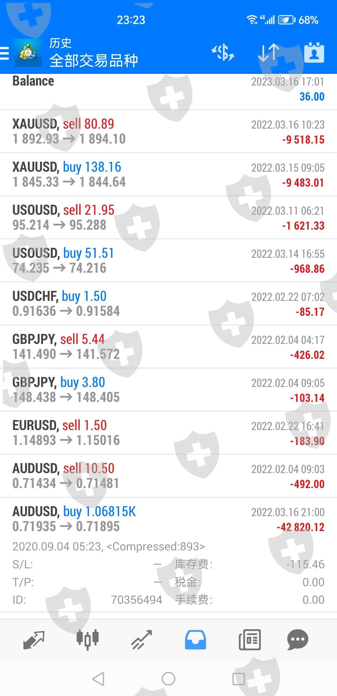 3月27日上午黄金突然跳空六七十个点;交易帐户也冒出多笔亏损单子!
