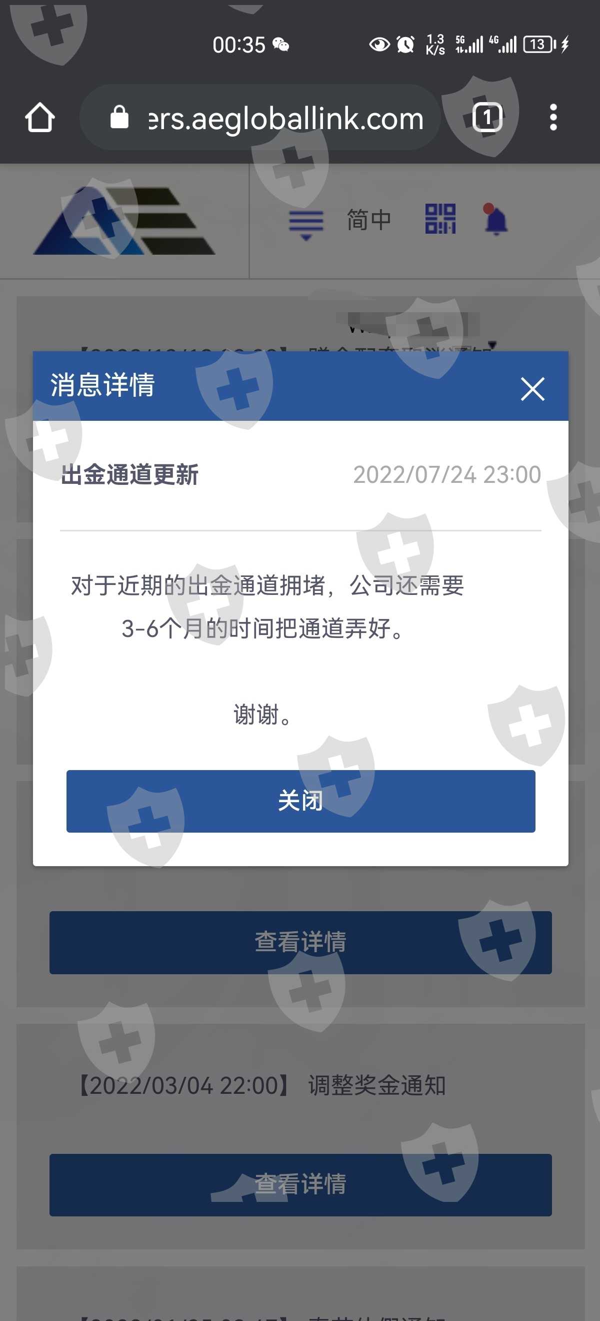2021年11月开始无法出金,2022年7月发公告说出金通道3-6个月弄好,如今时间已到,仍无法出金,任何消息也没有,公告都不发一个。