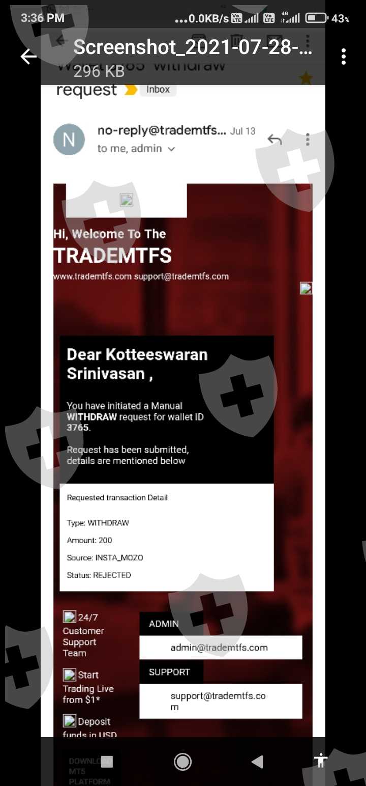 hi sir my name is koteswaran I am one of the account to all the and I am join for currency trading from trade mtfs platform and I invest $200 dollars actually I am a beginner so my account manager sakthi Saravanan is getting me actually is not giving proper guide you he is not interest my account famous letter I will decide to withdramai funds so I give the request several times but always reject