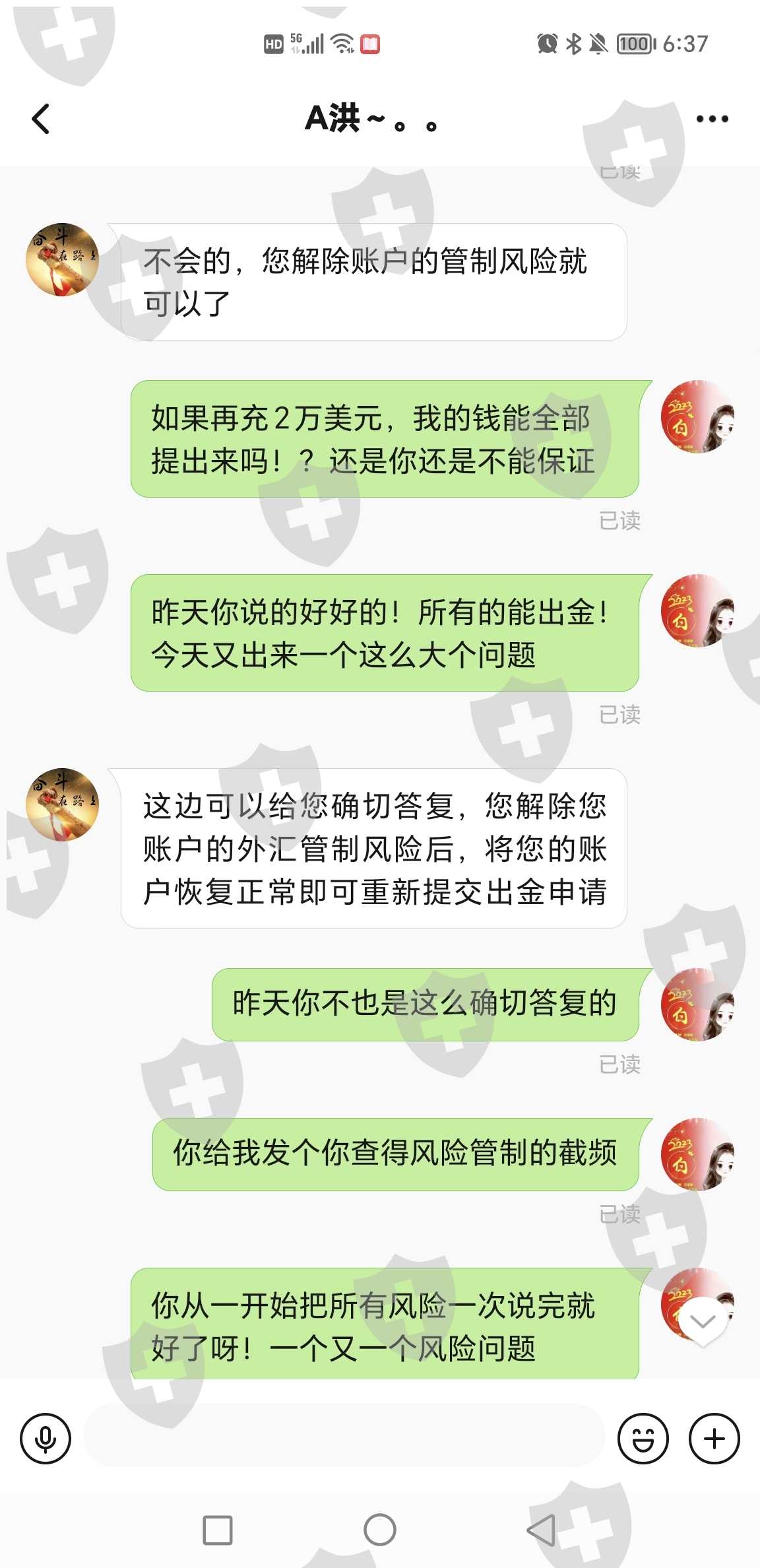 无法出金,客服要求兑换两万美元来提高外汇评分才能解除账户外汇管制风险!已经投了3个2万美金,请求帮助