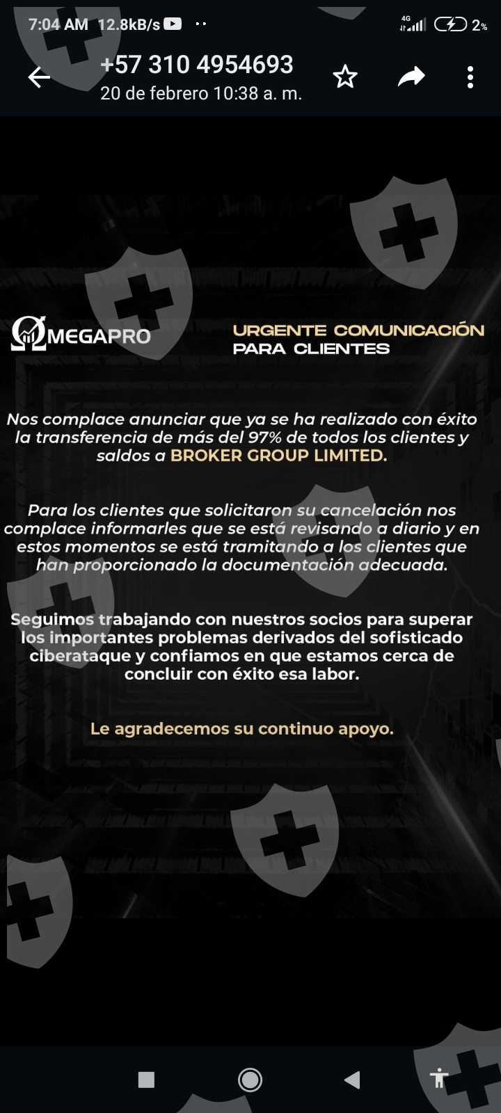 Ingresé en el mes de marzo del 2022 a Omega pro la suma de $3000 dólares a interés compuesto en enero de 2023 mi líder me solicitó presentar documentación para trasladar mi cuenta a brokergroup y poder retirar mi dinero. Pero hasta la fecha no me han hecho la devolución del dinero y tampoco me dan información