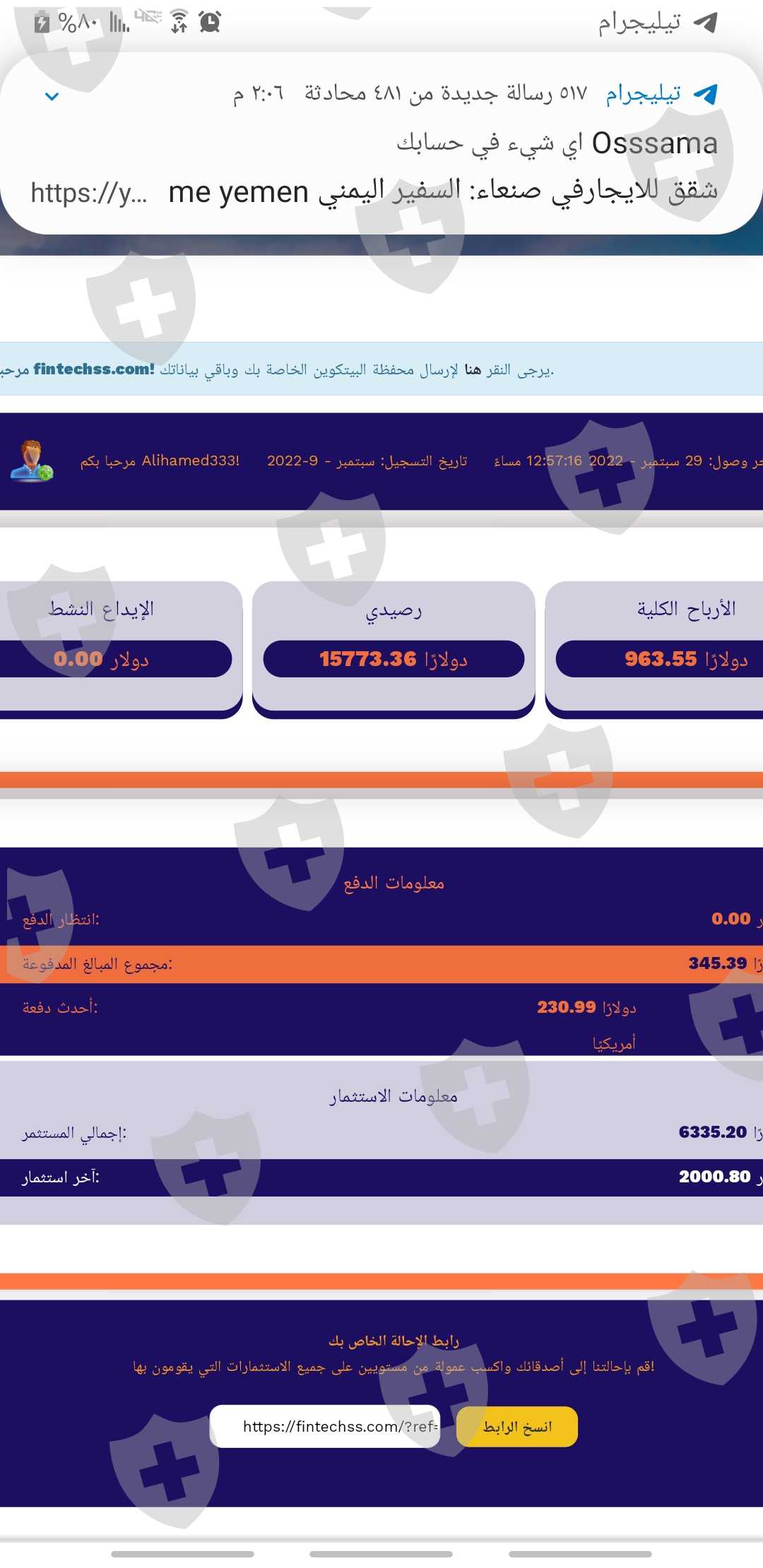 تم تحويل المبالغ الى الشركة ومن ثم طلبو مني رسوم ico وتم تحويل رسوم ico 2000$ وبعدها طلبو مني الاحالة لاشخاص او دفع رسوم 2000$ وكانت المبالغ المستثمرة معاهم اكثر من 6000$