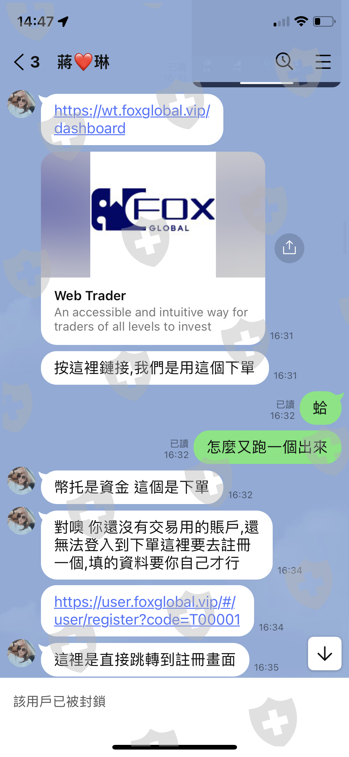 在派愛認識一個女網友,互相都還蠻聊得來的,聊天過程中對方常常po出交易紀錄,引誘去發問後說可以帶著一起投資,按照步驟透過幣托交易所入金到平台後,覺得平台過於陽春感到疑惑,要求對方提供證明,對方也提供了一張牌照證明有被監管並聲稱早已在上面交易數年,但經由whois查詢得知,該平台網址foxglobal.vip的註冊時間為2023/3/2,因此於平台操作出金希望能挽回損失,但平台以無交易紀錄為由拒絕出金,按照要求執行一次交易後,平台回覆存在違規交易,需要繳納帳戶餘額的保證金,否則將會銷戶處理。