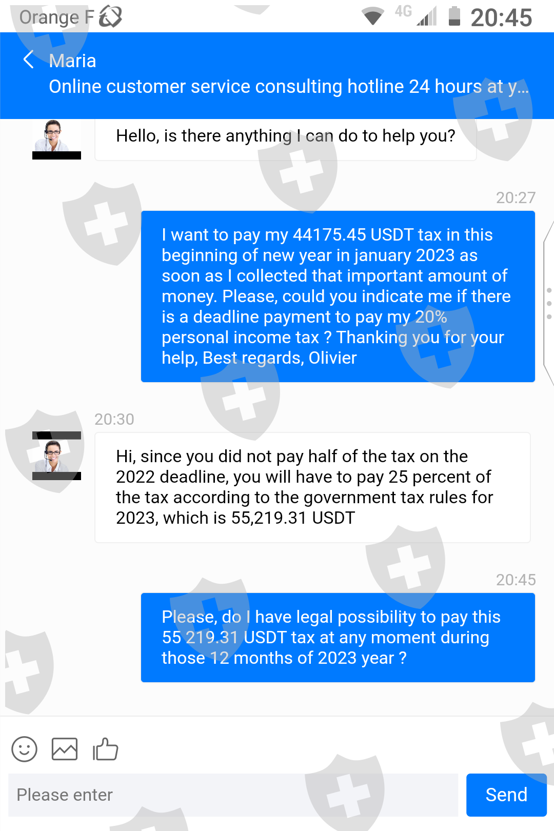 Online Customer Service asked me to pay a “ 25% personal income tax ” (55 KUSDT ! ! !) to have the “ right ” to withdraw my all 255,09 KUSDT funds !