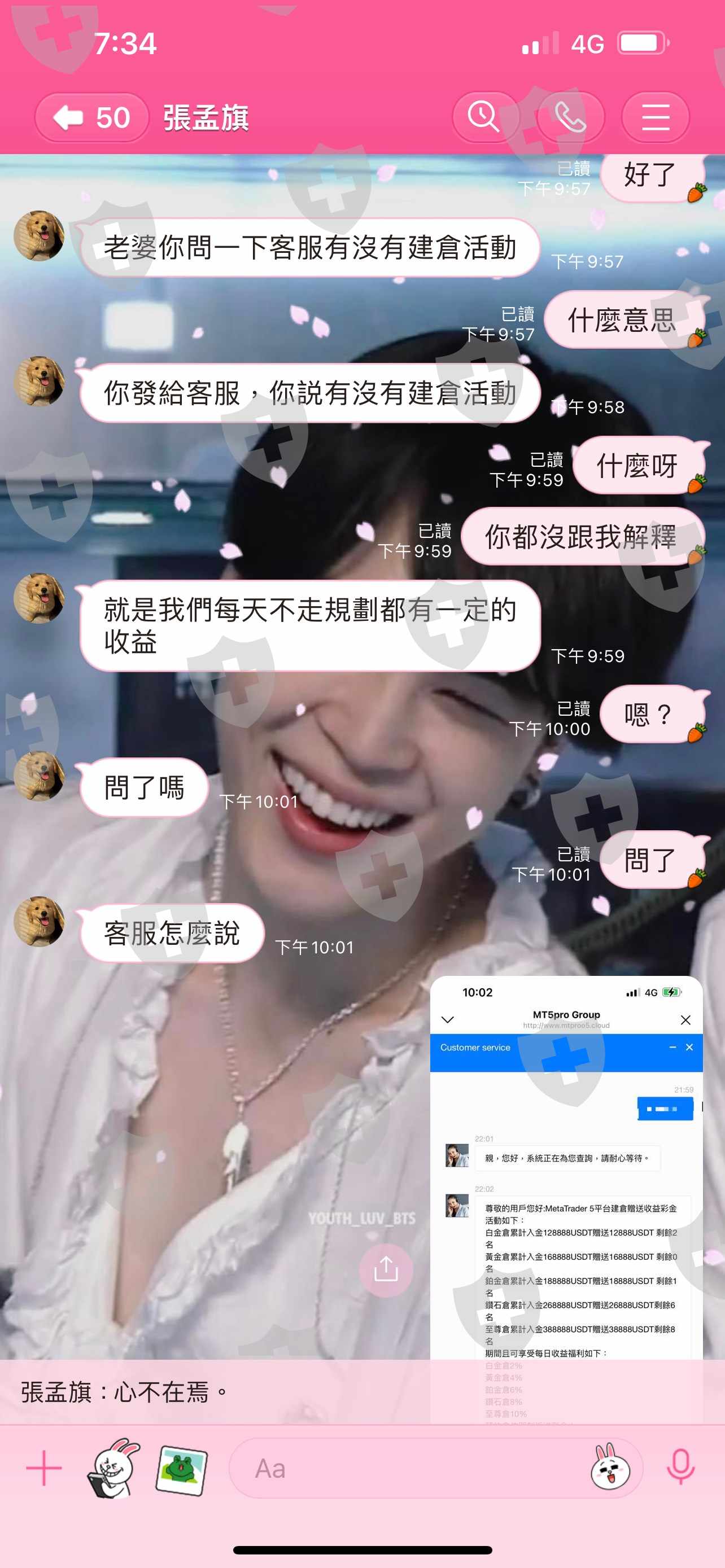 對方是從IG找我聊天的,剛開始我愛理不理,過程中他沒放棄,後來就聊出感情,對方說有賺錢的機會,投資國際黃金,我因為不太相信,本來一直推託,因為愛後來我被說服,剛開始有小賺錢,但突然2月底他讓我問平台客服是否有建倉活動,我因為沒有資金,不想加入,對方說一切有他在不要擔心,我被強硬加入後,他讓我去貸款想辦法籌得資金,對方也有幫我出資金,我也拿出存款,但過程中資金仍不夠,我一度不想繼續,詢問客服因為名額有限,取消或逾期會有每日5%違約金並會凍結帳戶,還有要擔負刑事責任,我實在太害怕,所以很努力籌錢,可是最後資金仍不夠,我開始懷疑對方,因為一直叫我想辦法去籌錢,所以上網找資料,也詢問懂投資的朋友,朋友告知這是資金盤(所謂的殺豬盤)說我被騙了,繼續入金也拿不到錢,就這樣我也沒繼續入金,跟對方說我沒錢了,對方也開始推卸責任,發現此公司風險極高,也有人受騙,詢問平台出金事宜,結果說未完成建倉,無法出金,我被騙了7萬美金左右,真是害死人