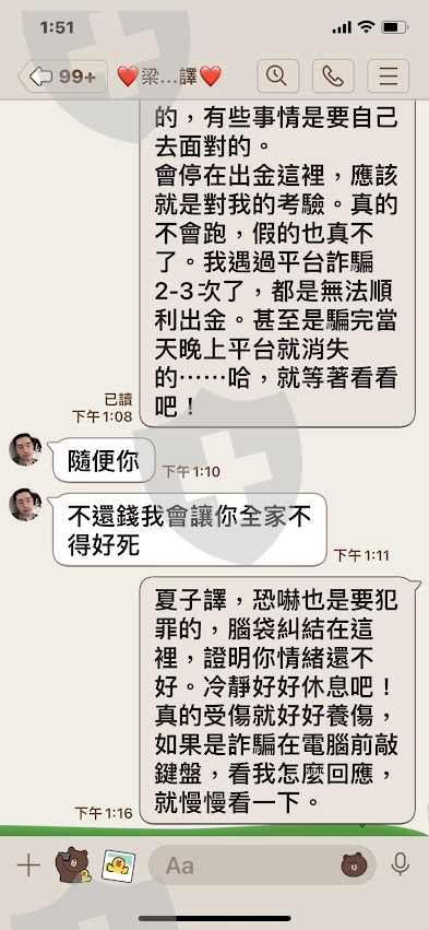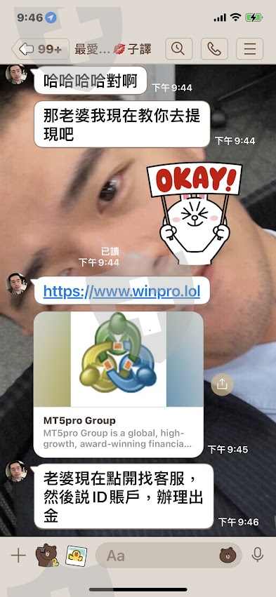 對方是在2月春節期間透過IG聊天認識,聊了兩天就要求加LINE好友,並表示自己很少使用IG.拉至LINE聊天室後就開始以各種甜言蜜語哄騙聊出感情,過程中除了透露自己是某銀行高管外,下班後就喜歡研究財經資訊並且自己也在操作黃金交易,偶爾會自爆今天黃金交易賺了$25000美,這樣的訊息並告知這是他花了幾年的時間辛苦研究出來的不易成果.起初是沒什摸興趣在黃金交易上面,後來就鼓勵多少投一些以後會有更多的聊天話題.一開始先用600美試投 ,獲利在12%左右,覺得沒有很誇張的高獲利,不覺得騙人.後來對方就鼓勵再多增加1500美,當天入金後沒有馬上帶著操作,於是自己就試著進行出金動作,發現根本出不了金.隔天對方就以我不信任他為由,拍照說他企圖自殘以此來威脅讓我繼續由他帶著投資操作.陸續投入約3萬美左右,於3月3日晚上說要教我出金.結果就遇上平台要求交付10%交易點差費用.我以目前沒有現金為由暫時停止出金.後來問過懂交易操作的朋友才告知我遇上了交友詐騙,即使我再交付10%的費用也拿不回被騙去的3萬美元在這個過程中,對方拉鏈接的MT5pro Group就已經是個假的官網,因為是下載MT5 app一開始不疑有他,後來發現每次官網鏈接的網址都不一樣,而只有對方給的app裡面才能找到Wintersnow Limited這家交易商.向警察局報案,公文回覆只說收幣地址在海外難以追查.今天上來看到有被害人跟我有幾乎一樣的遭遇是這個交易商而且從事黃金交易,所以鼓起勇氣PO文希望不要再有人被騙上當了