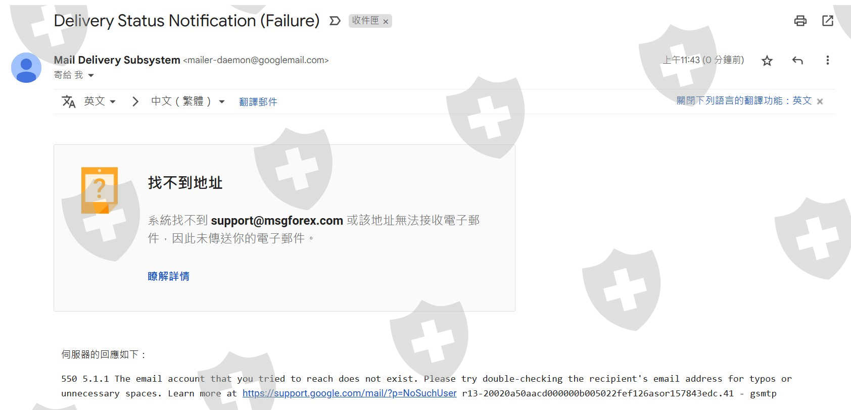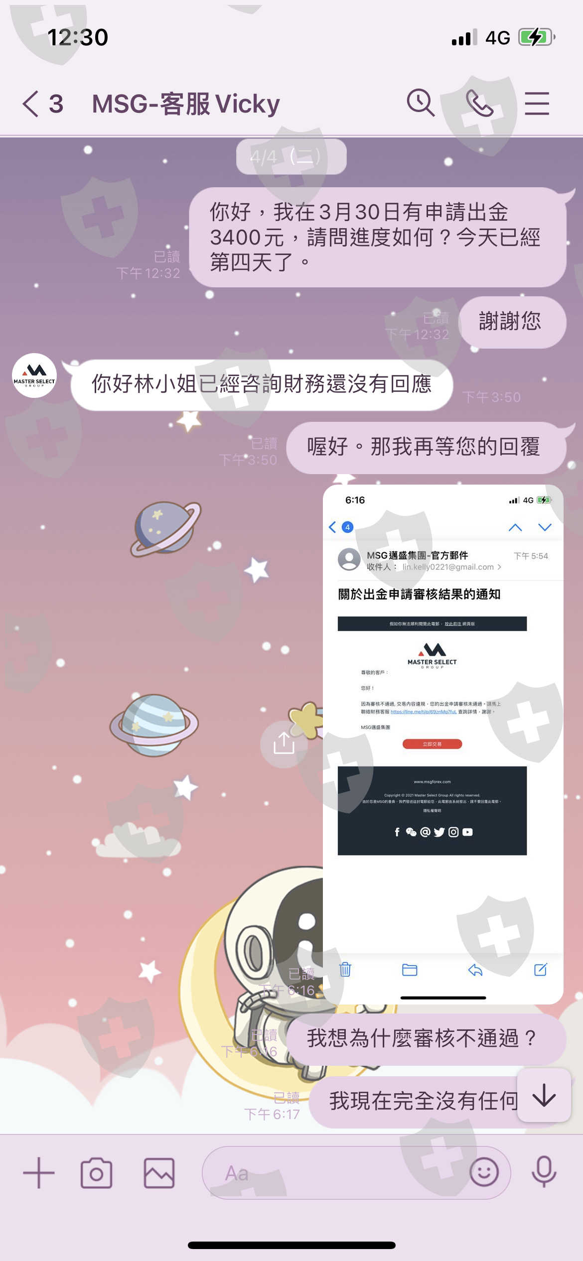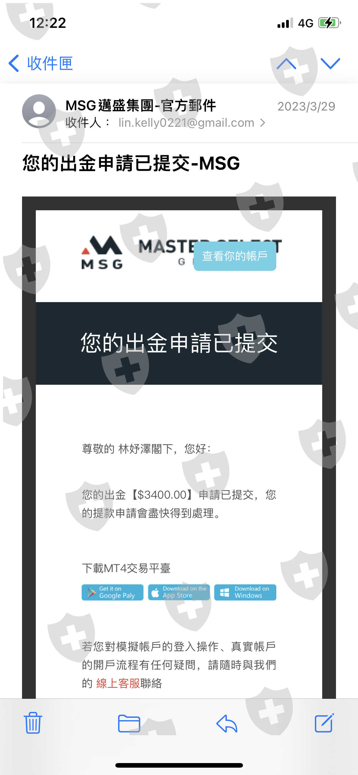 我在2023/3/29將所有頭寸平倉並申請出金美金3400元,MSG在2023年4月4日收到有郵件說不讓出金因為交易違規。但我沒有任何違規事項,所以發Line詢問客服。客服諮詢財務很多天都沒有告知原因。我發了郵件到support@magforex.com詢問出金相關問題時,郵件被彈回來。再度打官網客服電話一樣是空號。