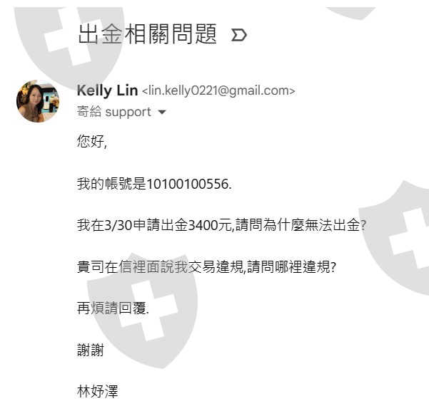 2023年3月29日申請出金美金3456,到今天都不讓出金也沒有任何回覆