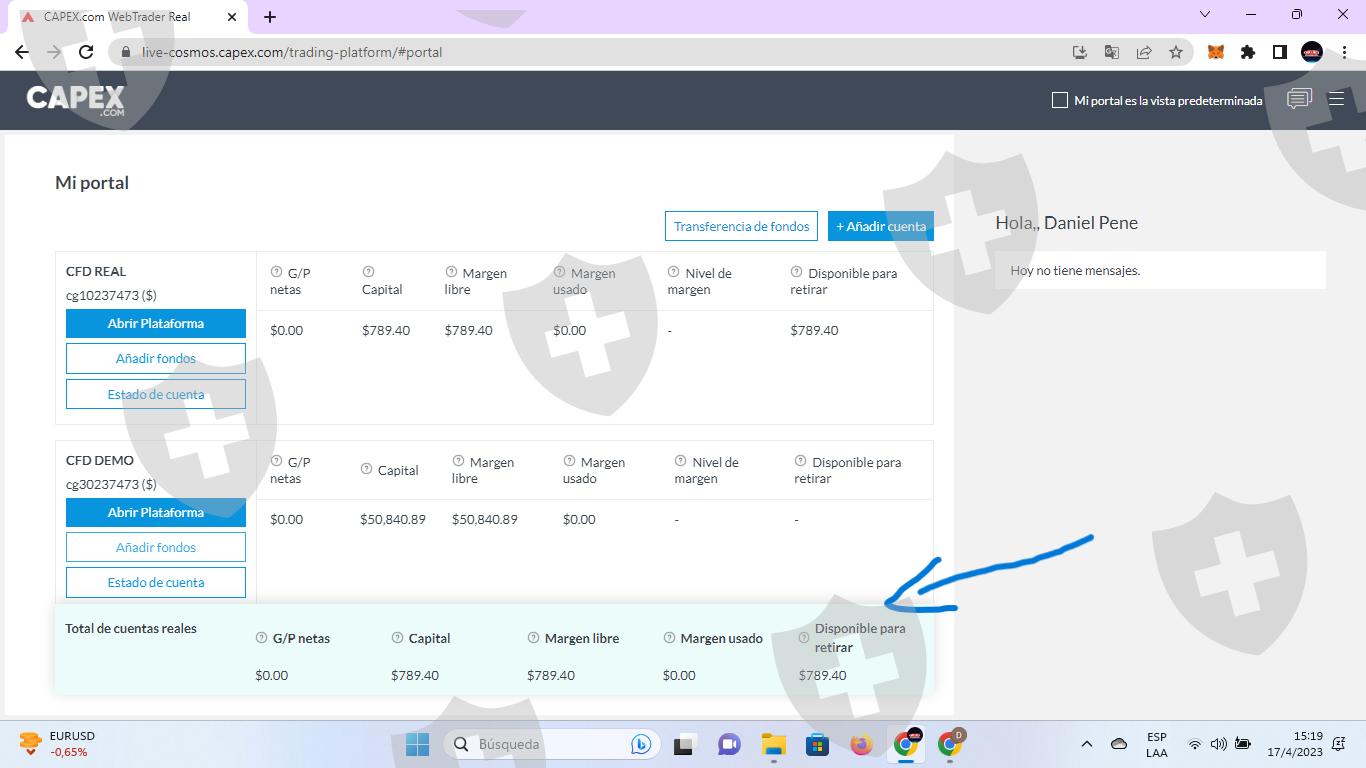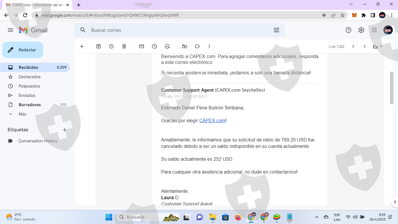 Yo habia depositado 180 dolares en esta plataforma y me habian dado 100 dolares de bono empece a operar alcanzando varios profit hasta alcanzar los 789 dolares...... entonces intente retirarlos y este broker corrupto me dice que solamente tengo 252 dolares reales y que las ganancias seran eliminadas debido a que mínimo debia tener mi capital en capex 90 dias antes de realizar el primer retiroen pocas palabras me estafaron tengo 547 dolares o mas de profit y me lo quitaron ....pueden ver las imagenes pruebas y las conversaciones con soporte son realmente una basura de broker .....ALEJENSE DE CAPEX !!!!....