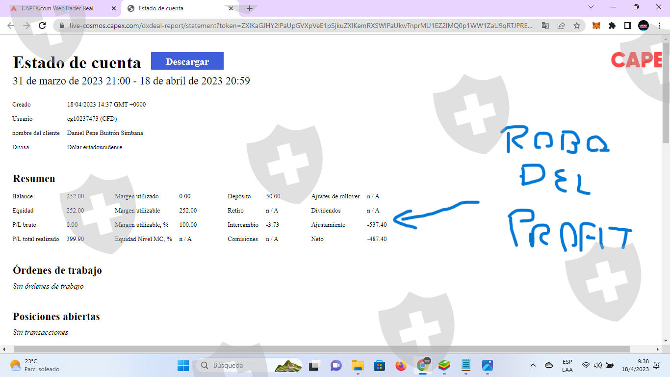ME QUITARON TODAS LAS GANANCIAS OBTENIDAS EN 1 MES DE TRABAJO 547 DOLARES ROBADOS POR CAPEX