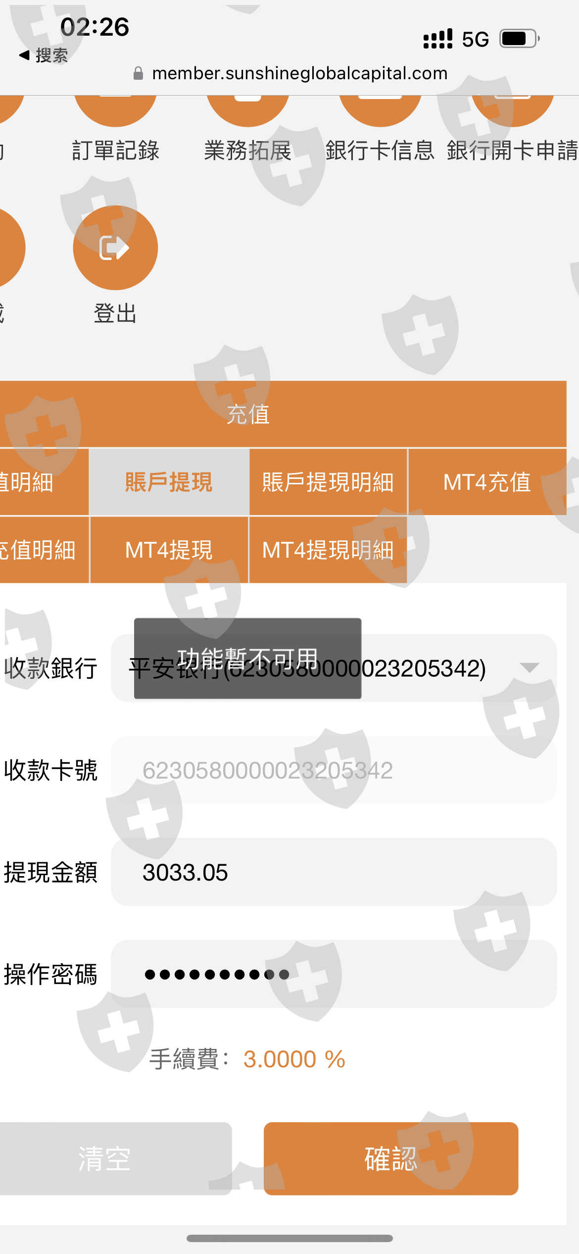 提现时一直提示“功能暂不可用”不给出金!