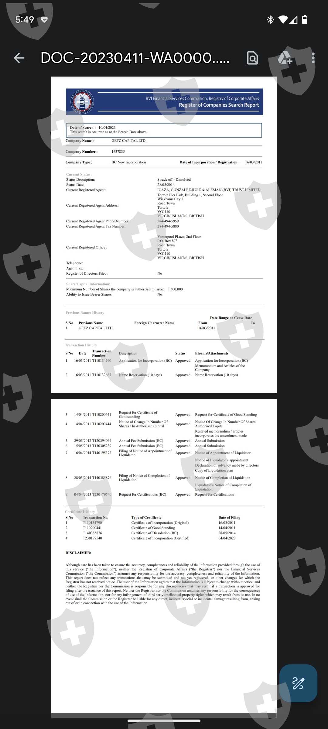 in 2020 they registered in st Vincent and Grenadines and their website is getzcapital.com. last year they upgraded to getzcapital.net. when I check the registration it moves to British Virgin Island entity.
