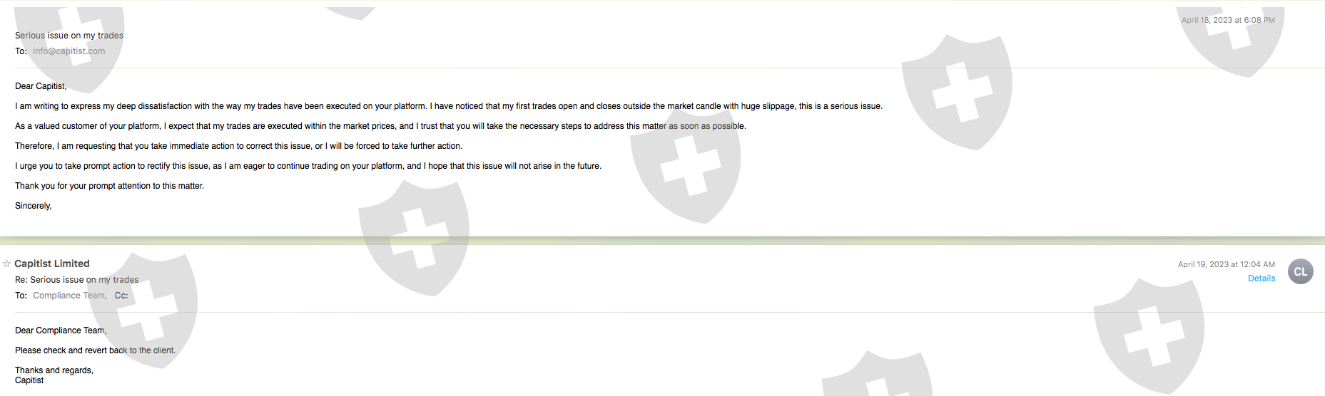 不要让自己认为仅仅因为他们提供帮助,他们就受到监管,这是一个优秀和诚实交易商。这个错。 Capitist 被证明是一个黑交易商。通过加密货币存入资金,在我进行第一笔交易后,我注意到他们对订单的操纵,他们在市场蜡线外开仓交易,滑点严重。与他们联系后,他们会通过电子邮件回复他们的合规人员,而合规人员从未对此类操纵做出任何解释。永远不要在这里存款。