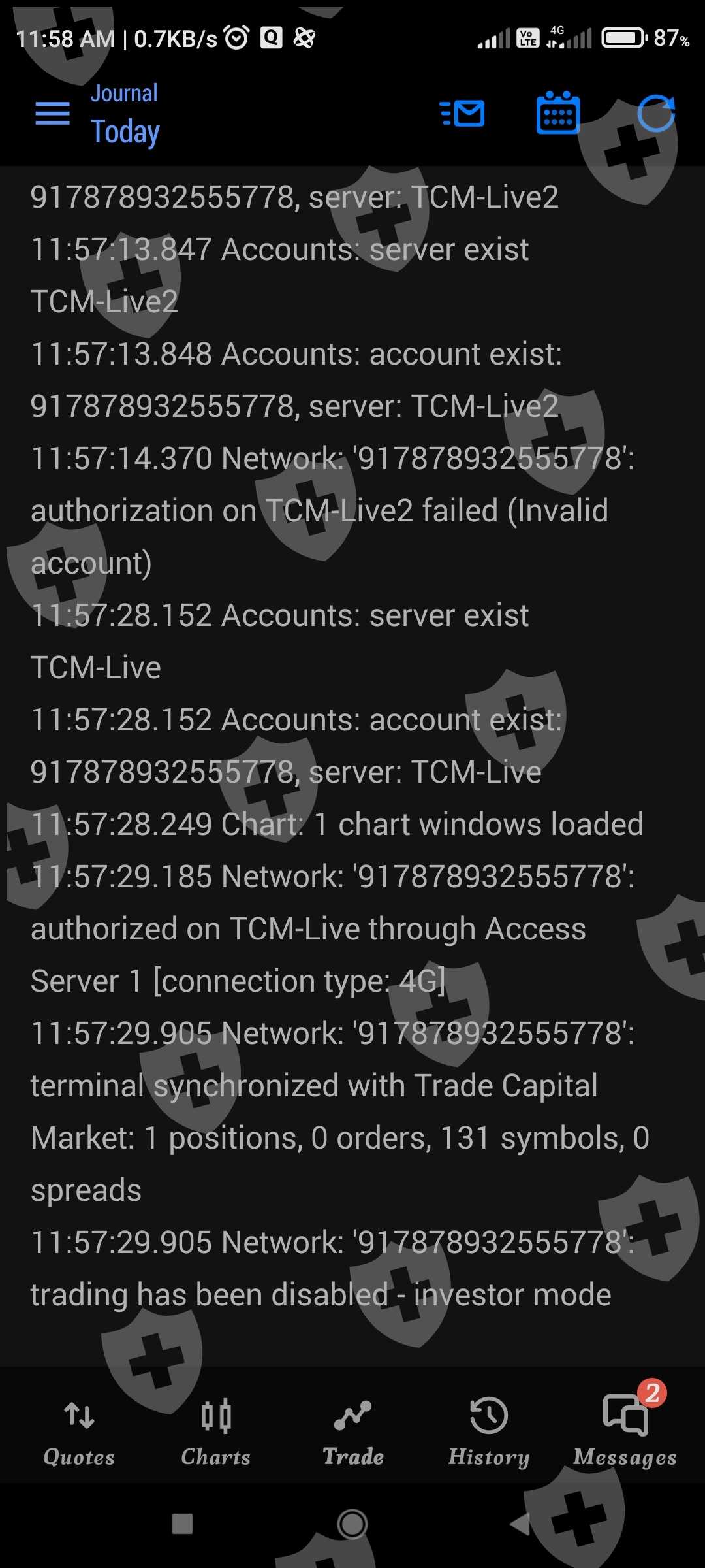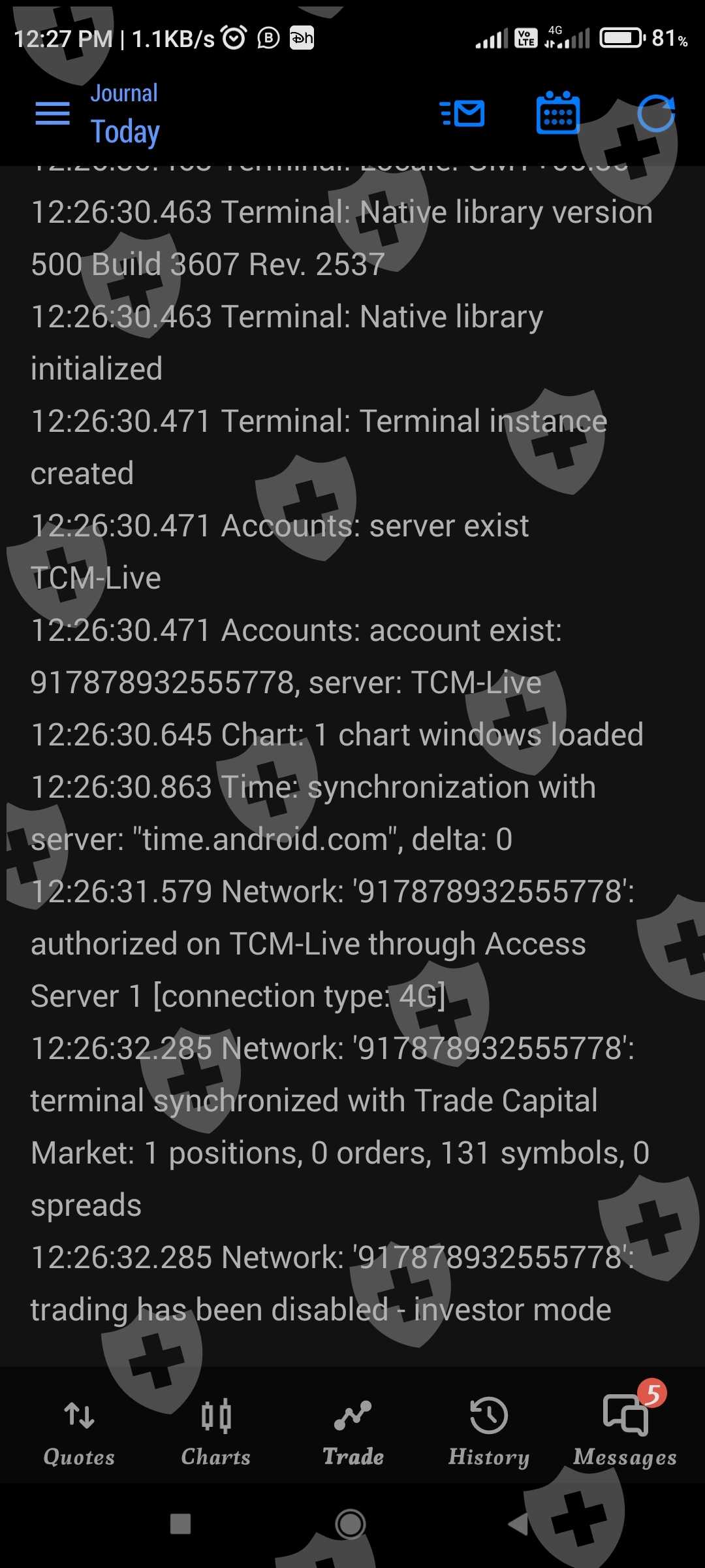 I checked MQL5 website and Journal of MT5 APP. My account was disabled by broker.